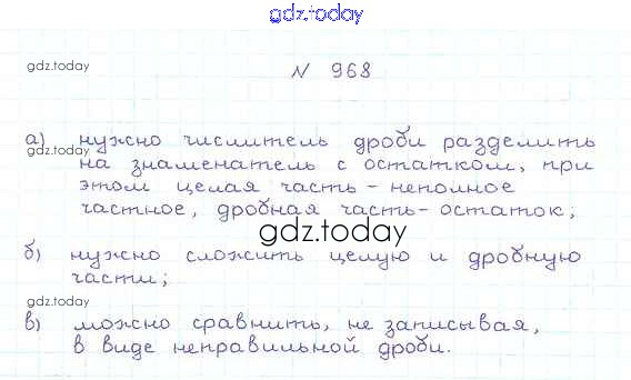 На страницах сайта gdz.today вы найдете учебный и вспомогательный материал, направленный на улучшения знаний школьной программы. ГДЗ - онлайн мир знаний Решение к упражнениям 968 Учебнику по Математике для 5 класса Никольский, Потапов Просвещение, Просвещение МГУ - школе 2016, 2012