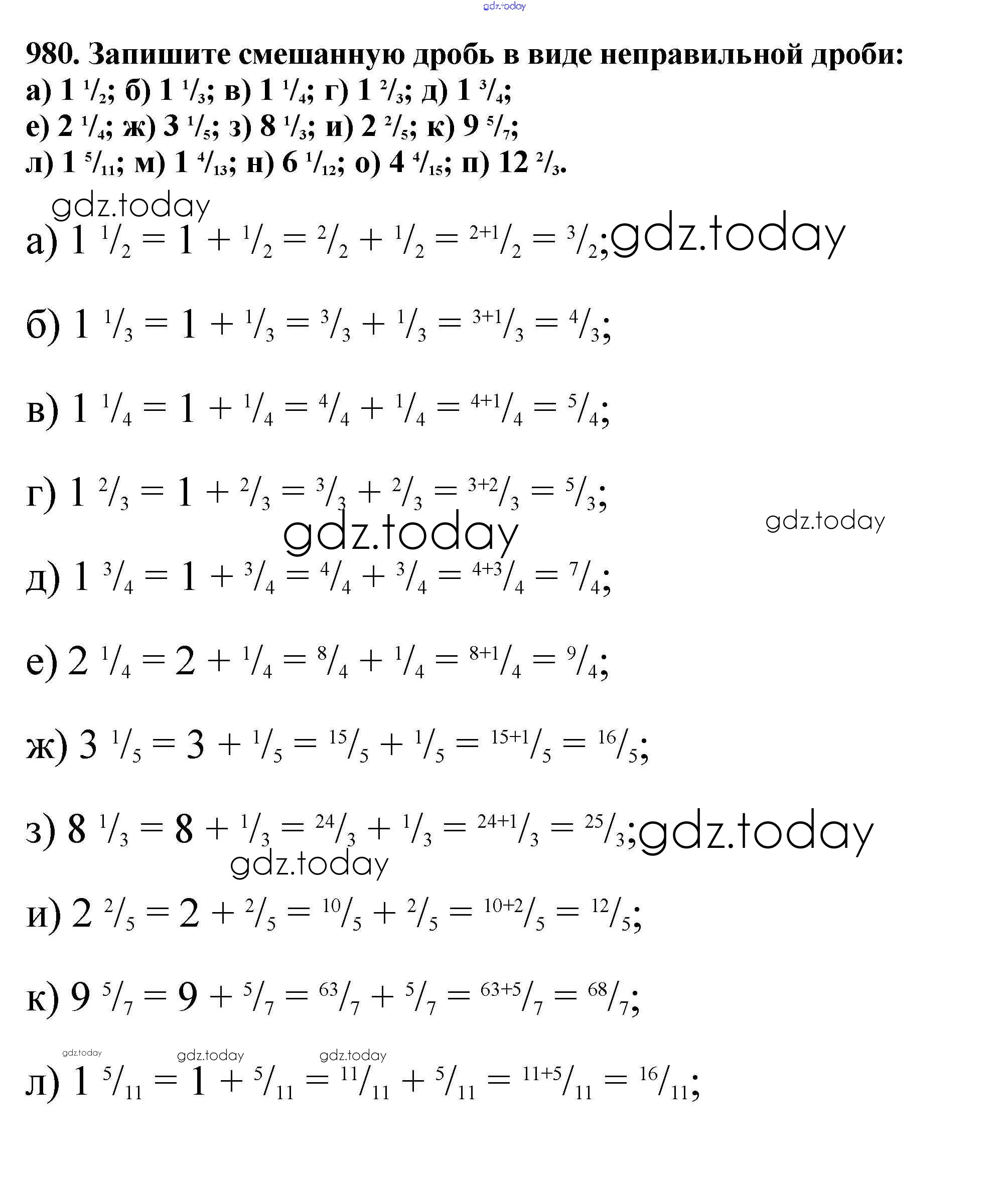 Ответы к Решение к упражнениям 980 Учебнику по Математике для 5 класса Никольский, Потапов Просвещение, Просвещение МГУ - школе 2016, 2012