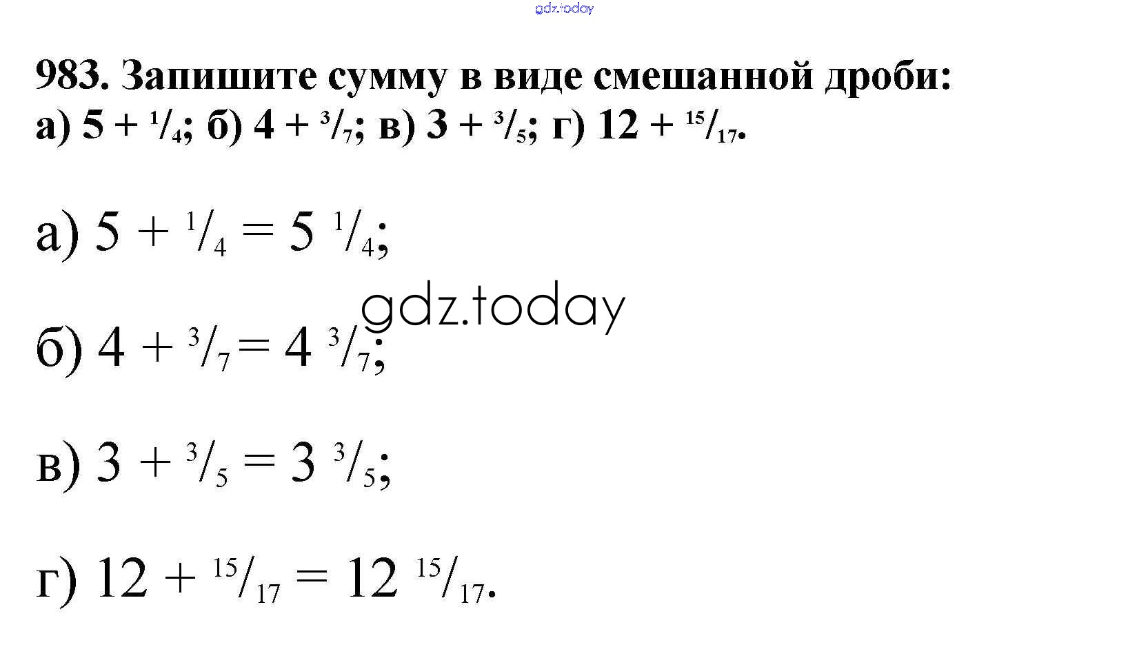 На страницах сайта gdz.today вы найдете учебный и вспомогательный материал, направленный на улучшения знаний школьной программы. ГДЗ - онлайн мир знаний Решение к упражнениям 983 Учебнику по Математике для 5 класса Никольский, Потапов Просвещение, Просвещение МГУ - школе 2016, 2012
