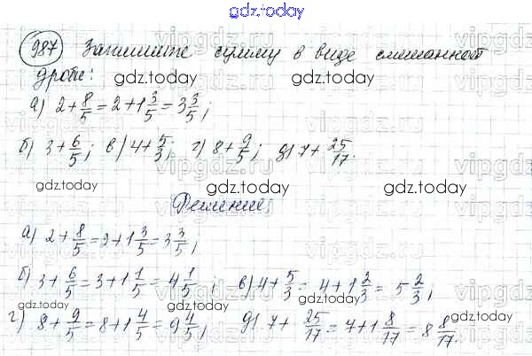 На страницах сайта gdz.today вы найдете учебный и вспомогательный материал, направленный на улучшения знаний школьной программы. ГДЗ - онлайн мир знаний Решение к упражнениям 987 Учебнику по Математике для 5 класса Никольский, Потапов Просвещение, Просвещение МГУ - школе 2016, 2012
