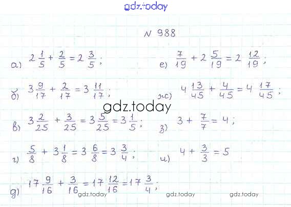 Ответы к Решение к упражнениям 988 Учебнику по Математике для 5 класса Никольский, Потапов Просвещение, Просвещение МГУ - школе 2016, 2012