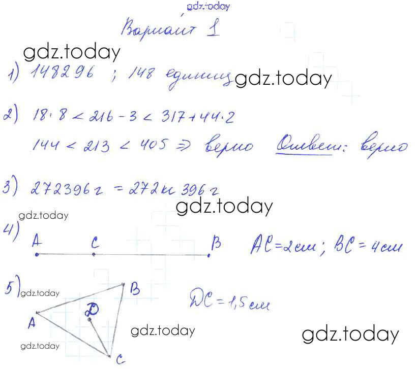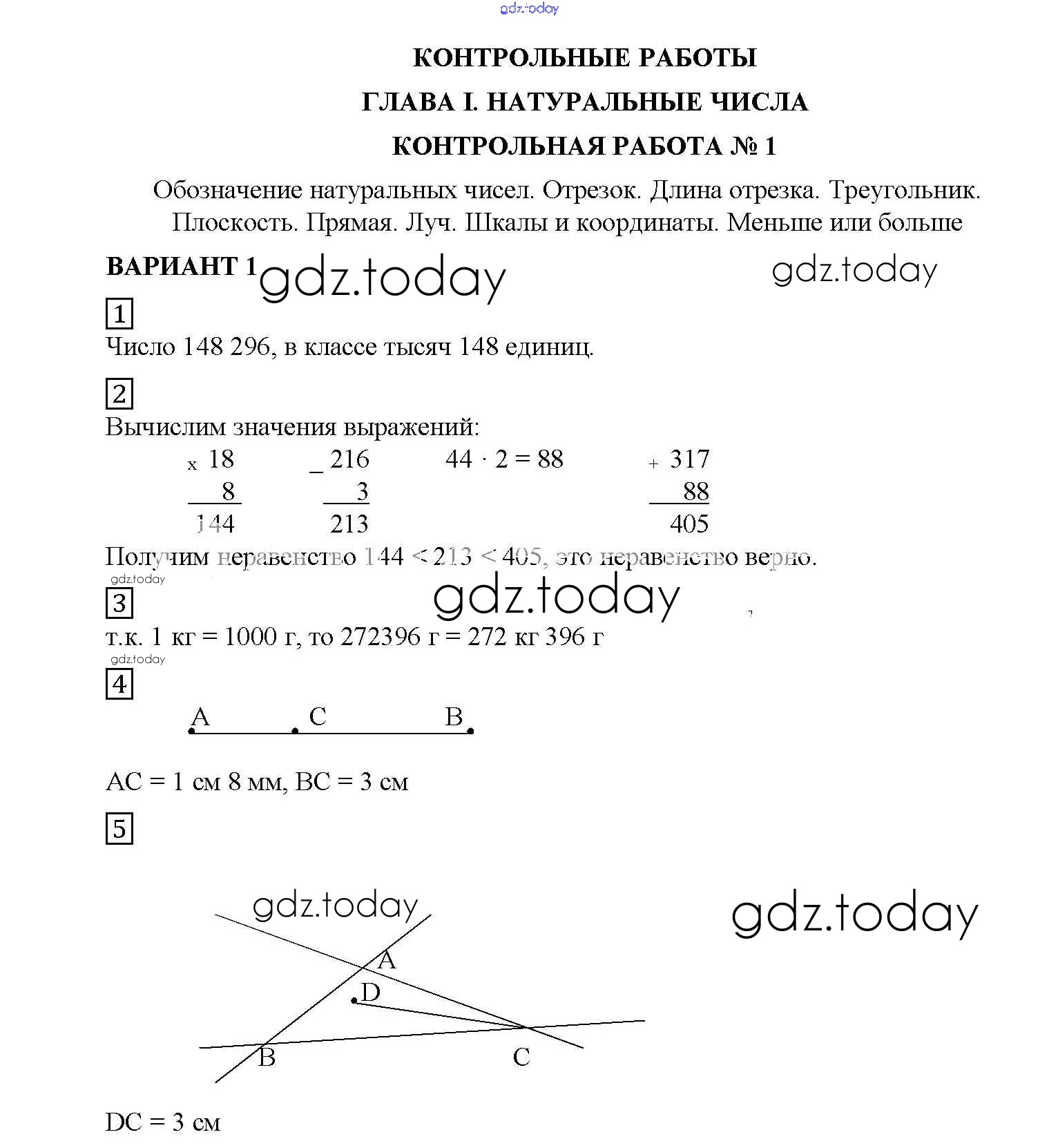 Ответы к КР №1. Обозначение натуральных чисел. Отрезок. Длина отрезка. Треугольник Решение к контрольным работам вариант №1 Дидактическим материалам по Математике для 5 класса Попов Экзамен УМК 2017