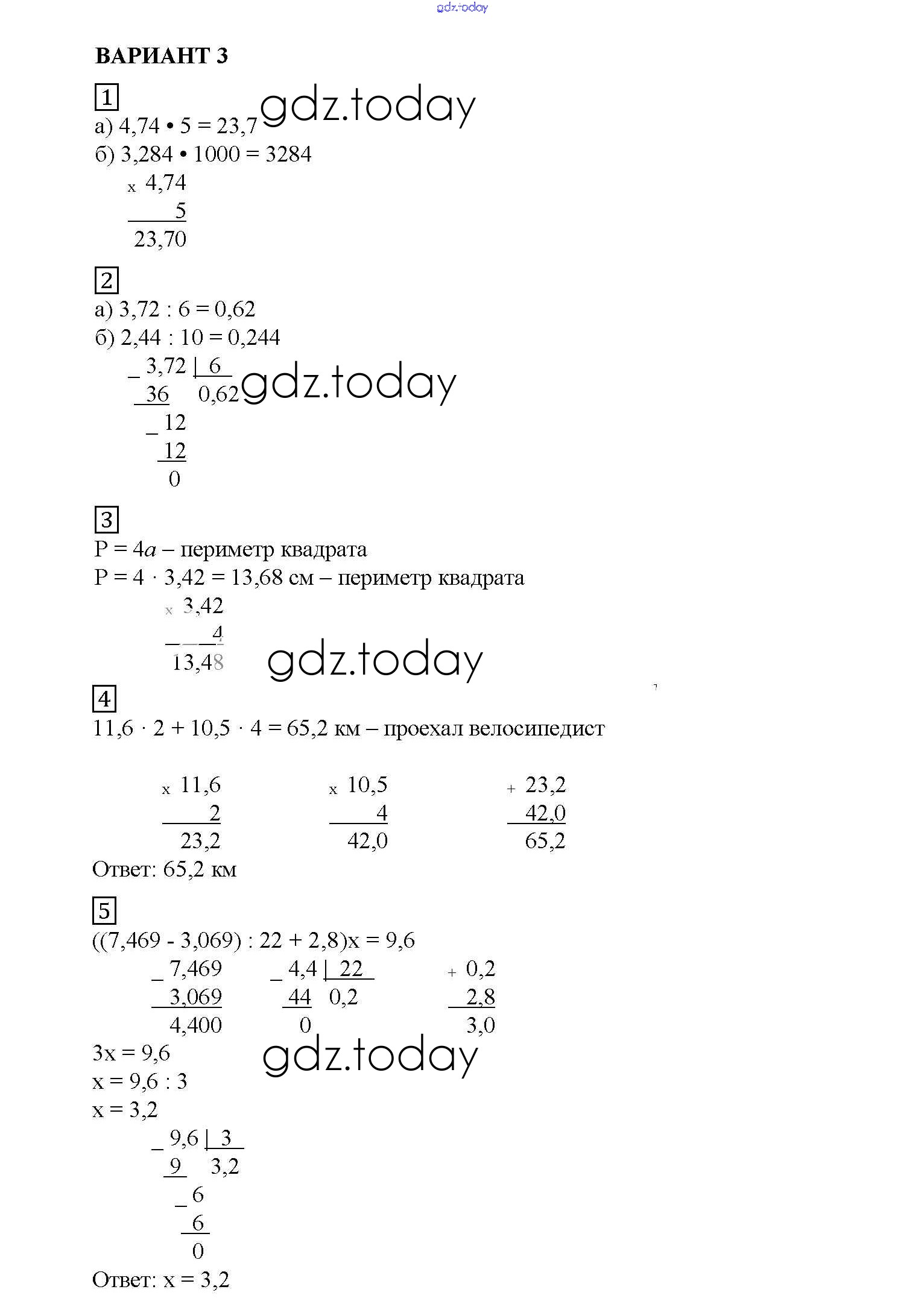 На страницах сайта gdz.today вы найдете учебный и вспомогательный материал, направленный на улучшения знаний школьной программы. ГДЗ - онлайн мир знаний КР №10. Умножение и деление десятичных дробей на натуральные числа Решение к контрольным работам вариант №3 Дидактическим материалам по Математике для 5 класса Попов Экзамен УМК 2017