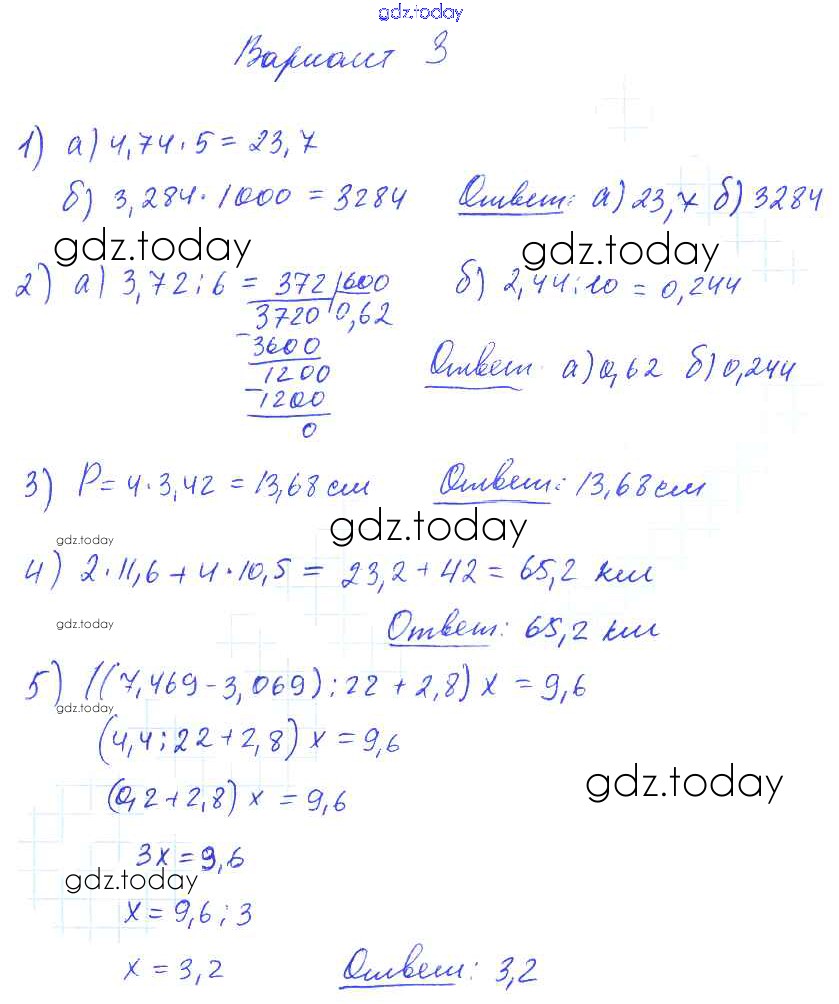 Ответы к КР №10. Умножение и деление десятичных дробей на натуральные числа Решение к контрольным работам вариант №3 Дидактическим материалам по Математике для 5 класса Попов Экзамен УМК 2017