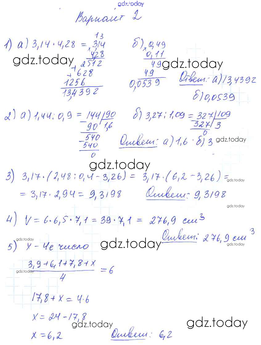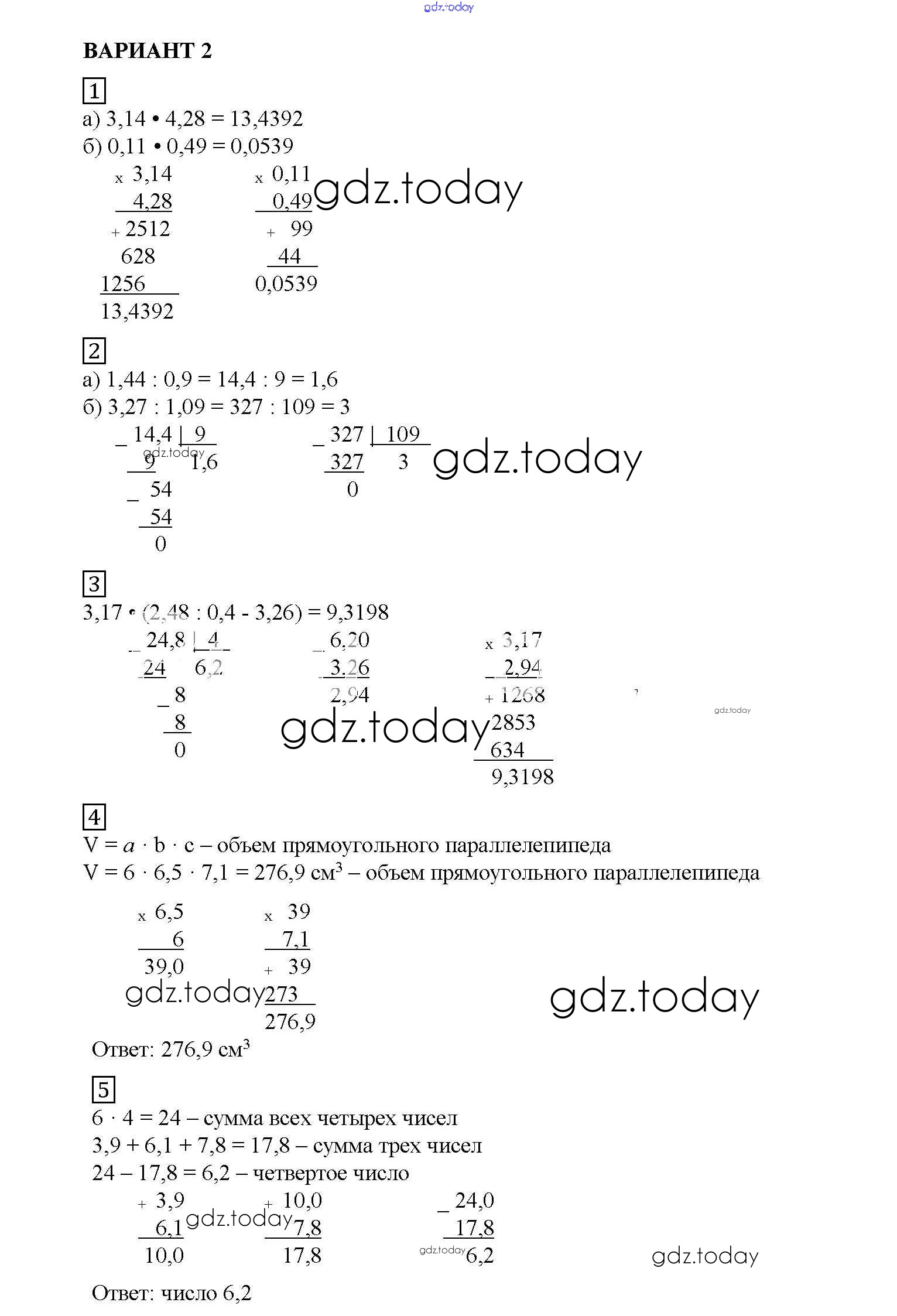 На страницах сайта gdz.today вы найдете учебный и вспомогательный материал, направленный на улучшения знаний школьной программы. ГДЗ - онлайн мир знаний КР №11. Умножение десятичных дробей. Деление на десятичную дробь Решение к контрольным работам вариант №2 Дидактическим материалам по Математике для 5 класса Попов Экзамен УМК 2017
