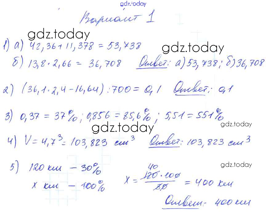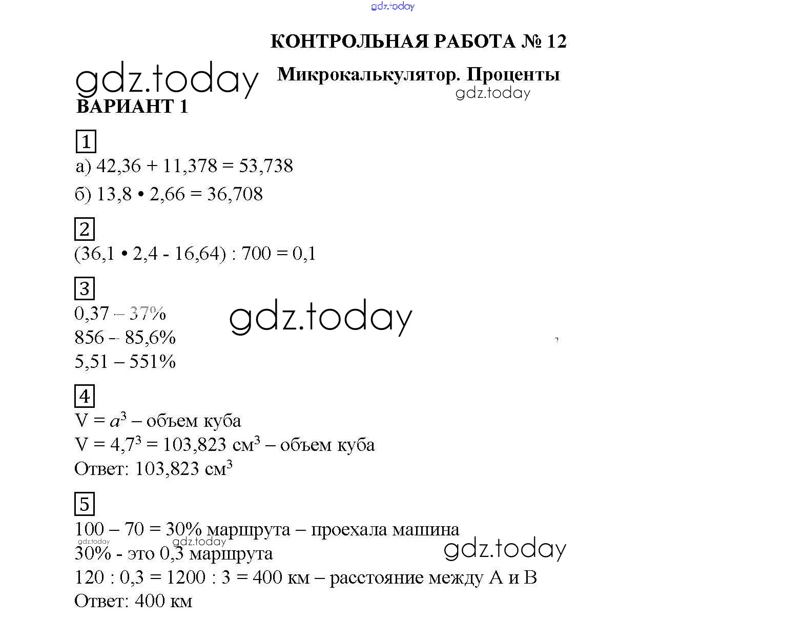 Ответы к КР №12. Микрокалькулятор. Проценты Решение к контрольным работам вариант №1 Дидактическим материалам по Математике для 5 класса Попов Экзамен УМК 2017
