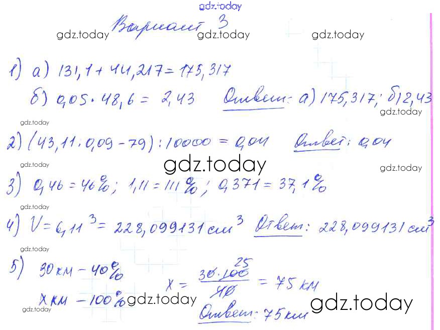 Ответы к КР №12. Микрокалькулятор. Проценты Решение к контрольным работам вариант №3 Дидактическим материалам по Математике для 5 класса Попов Экзамен УМК 2017