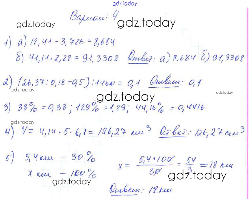 Ответы к КР №12. Микрокалькулятор. Проценты Решение к контрольным работам вариант №4 Дидактическим материалам по Математике для 5 класса Попов Экзамен УМК 2017