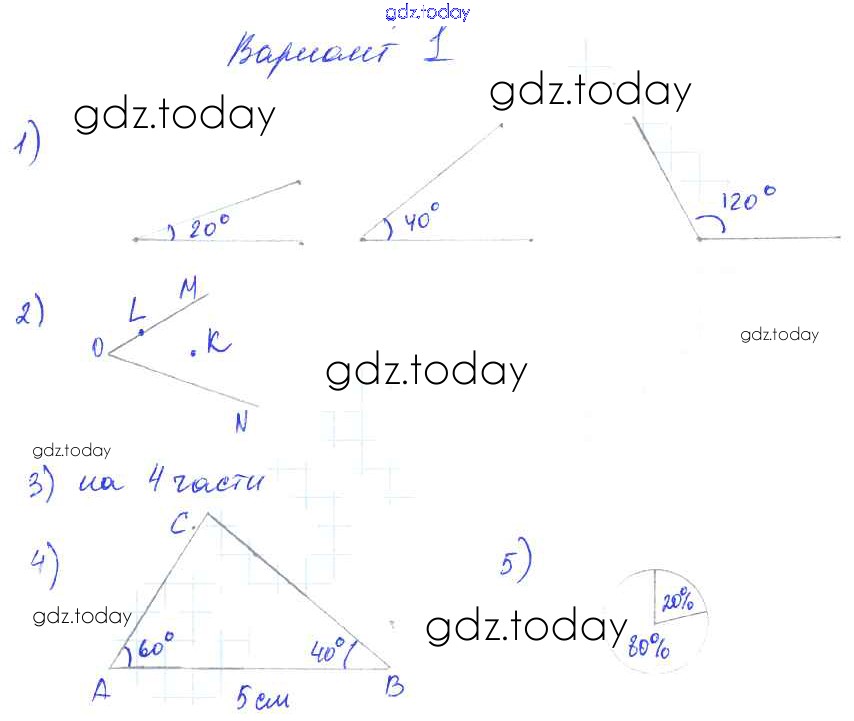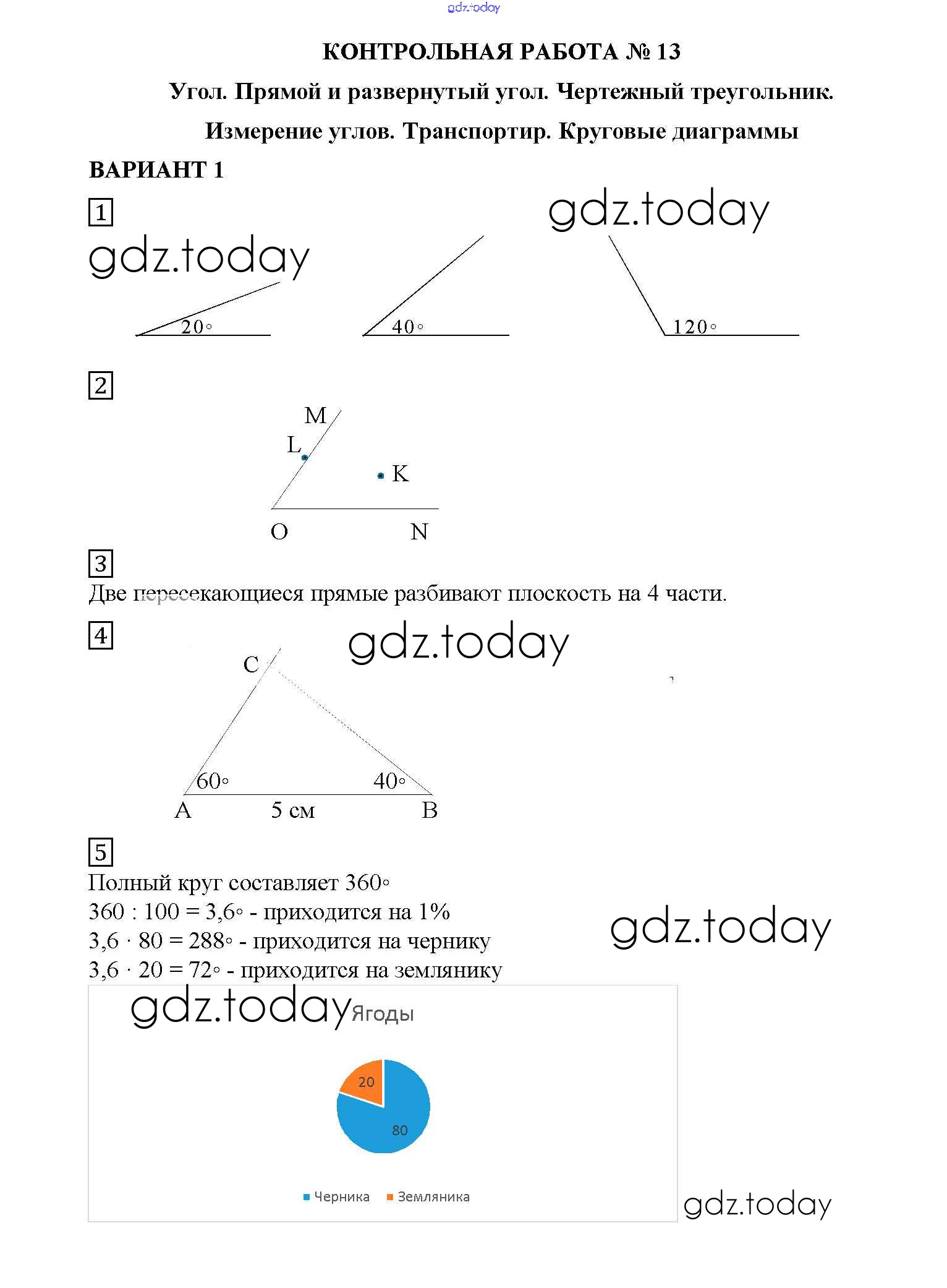 Ответы к КР №13. Угол. Чертежный треугольник. Транспортир Решение к контрольным работам вариант №1 Дидактическим материалам по Математике для 5 класса Попов Экзамен УМК 2017