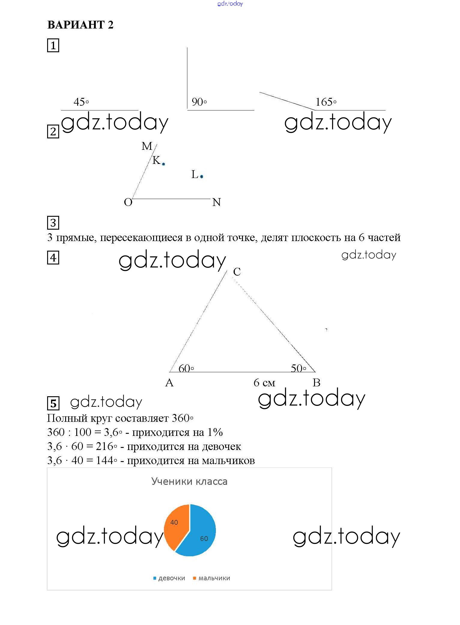 Ответы к КР №13. Угол. Чертежный треугольник. Транспортир Решение к контрольным работам вариант №2 Дидактическим материалам по Математике для 5 класса Попов Экзамен УМК 2017