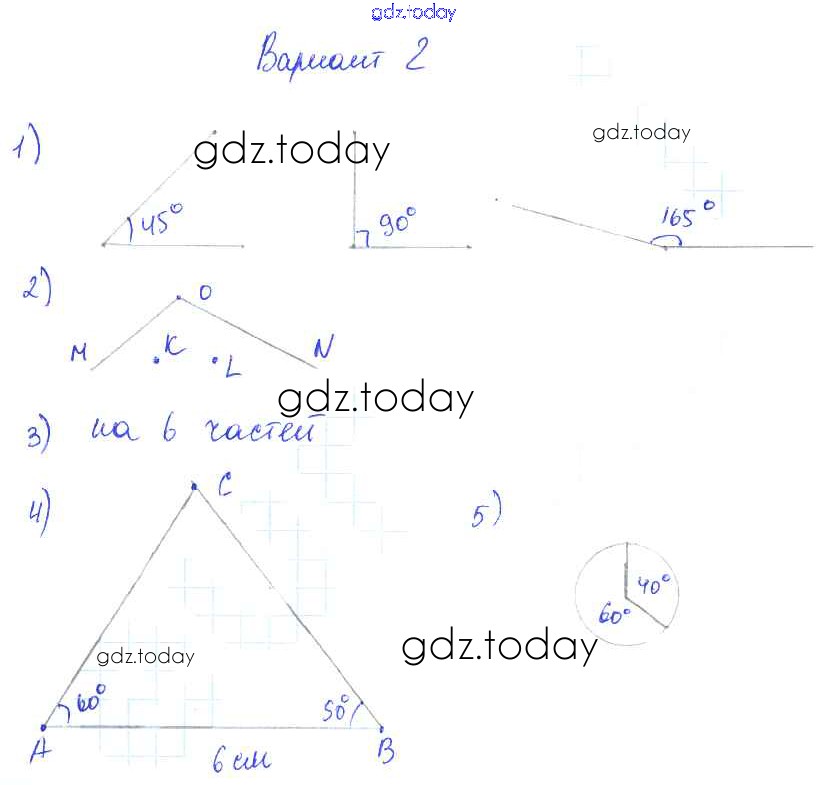 На страницах сайта gdz.today вы найдете учебный и вспомогательный материал, направленный на улучшения знаний школьной программы. ГДЗ - онлайн мир знаний КР №13. Угол. Чертежный треугольник. Транспортир Решение к контрольным работам вариант №2 Дидактическим материалам по Математике для 5 класса Попов Экзамен УМК 2017