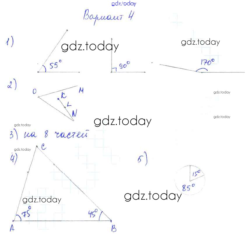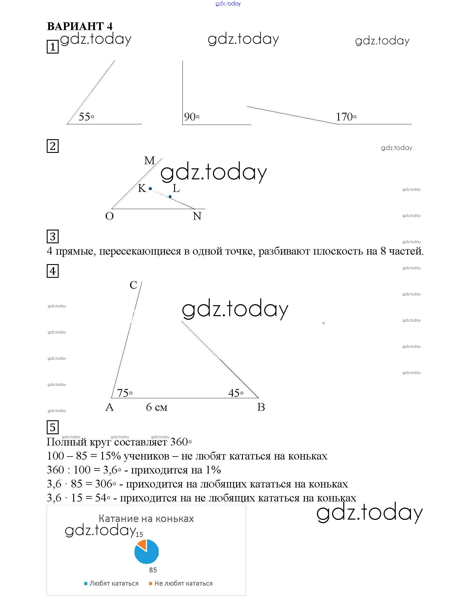 Ответы к КР №13. Угол. Чертежный треугольник. Транспортир Решение к контрольным работам вариант №4 Дидактическим материалам по Математике для 5 класса Попов Экзамен УМК 2017