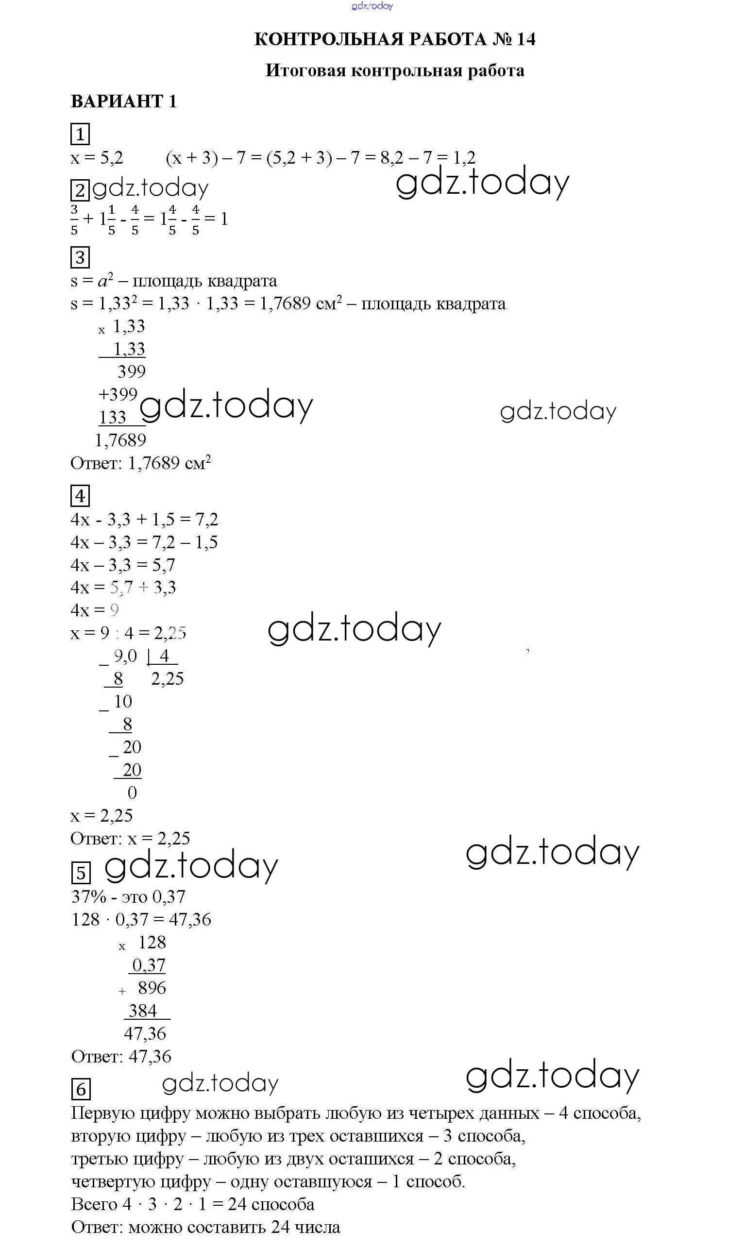 Ответы к КР №14. Итоговая Решение к контрольным работам вариант №1 Дидактическим материалам по Математике для 5 класса Попов Экзамен УМК 2017