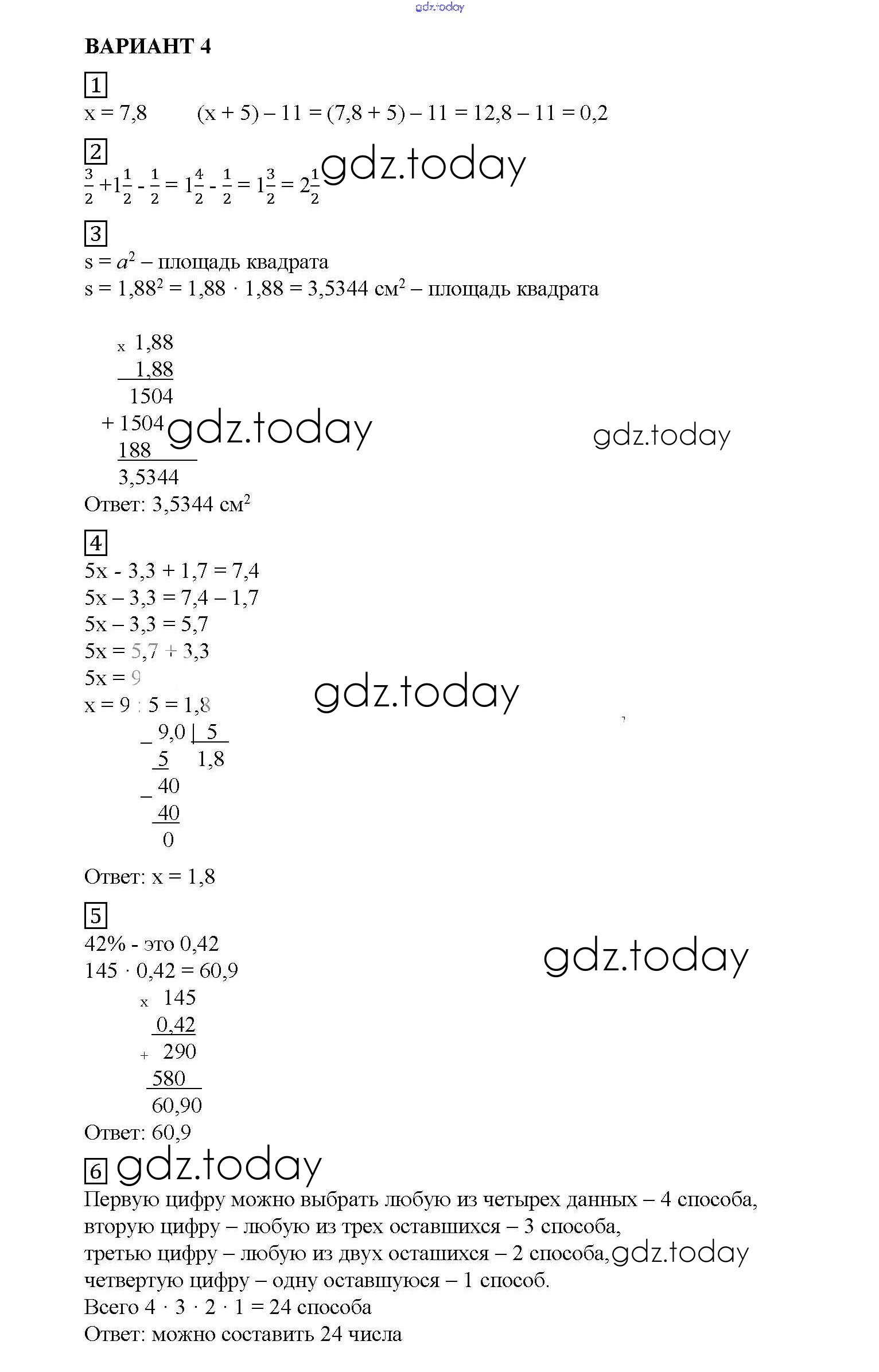 На страницах сайта gdz.today вы найдете учебный и вспомогательный материал, направленный на улучшения знаний школьной программы. ГДЗ - онлайн мир знаний КР №14. Итоговая Решение к контрольным работам вариант №4 Дидактическим материалам по Математике для 5 класса Попов Экзамен УМК 2017