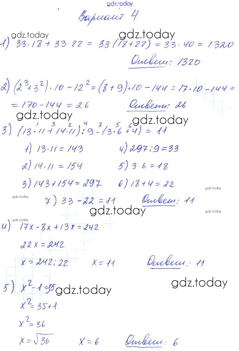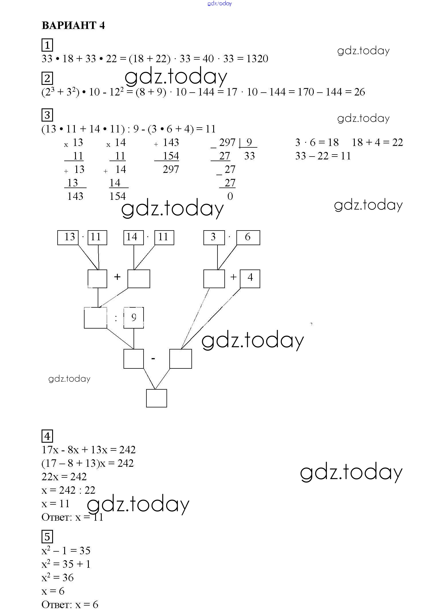 Ответы к КР №5. Упрощение выражений. Порядок выполнения действий. Квадрат и куб числа Решение к контрольным работам вариант №4 Дидактическим материалам по Математике для 5 класса Попов Экзамен УМК 2017