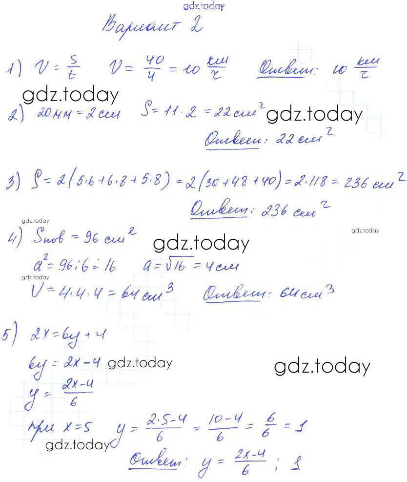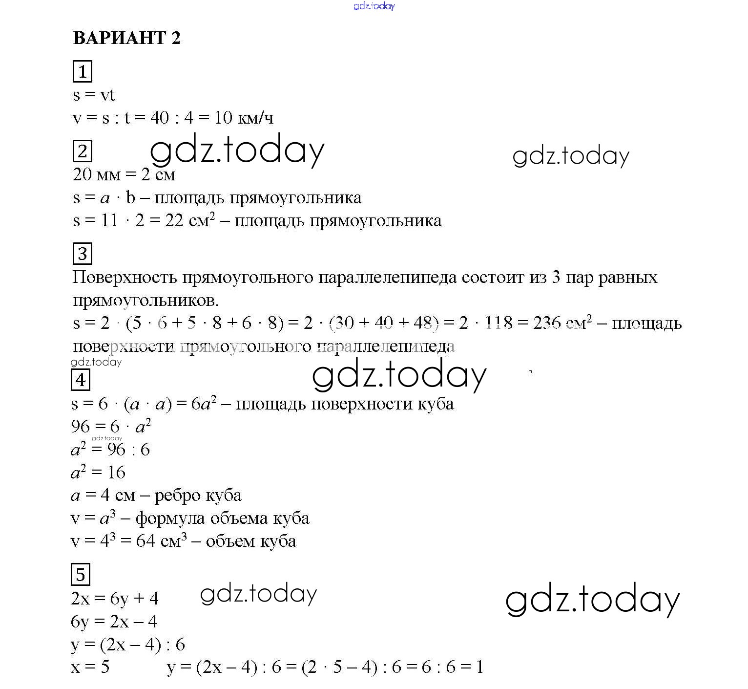 Ответы к КР №6. Формулы. Площадь. Формула площади прямоугольника Решение к контрольным работам вариант №2 Дидактическим материалам по Математике для 5 класса Попов Экзамен УМК 2017
