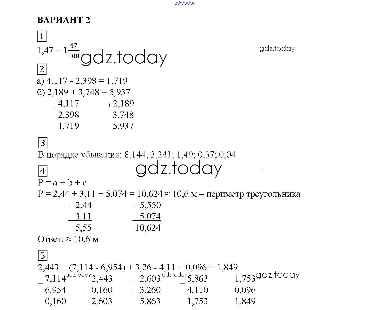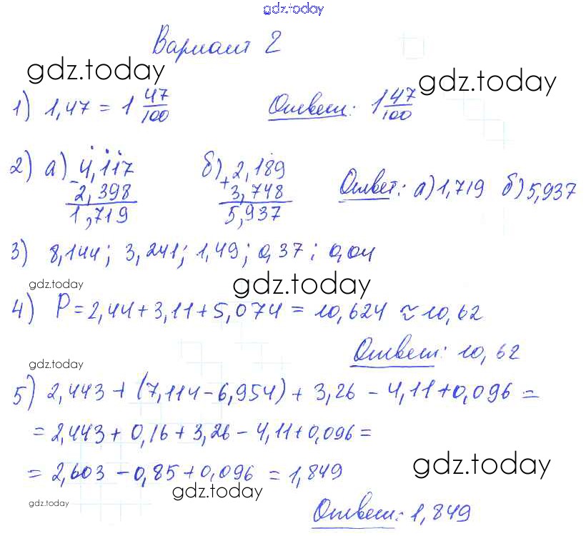 Ответы к КР №9. Десятичная запись дробных чисел. Сравнение десятичных дробей Решение к контрольным работам вариант №2 Дидактическим материалам по Математике для 5 класса Попов Экзамен УМК 2017