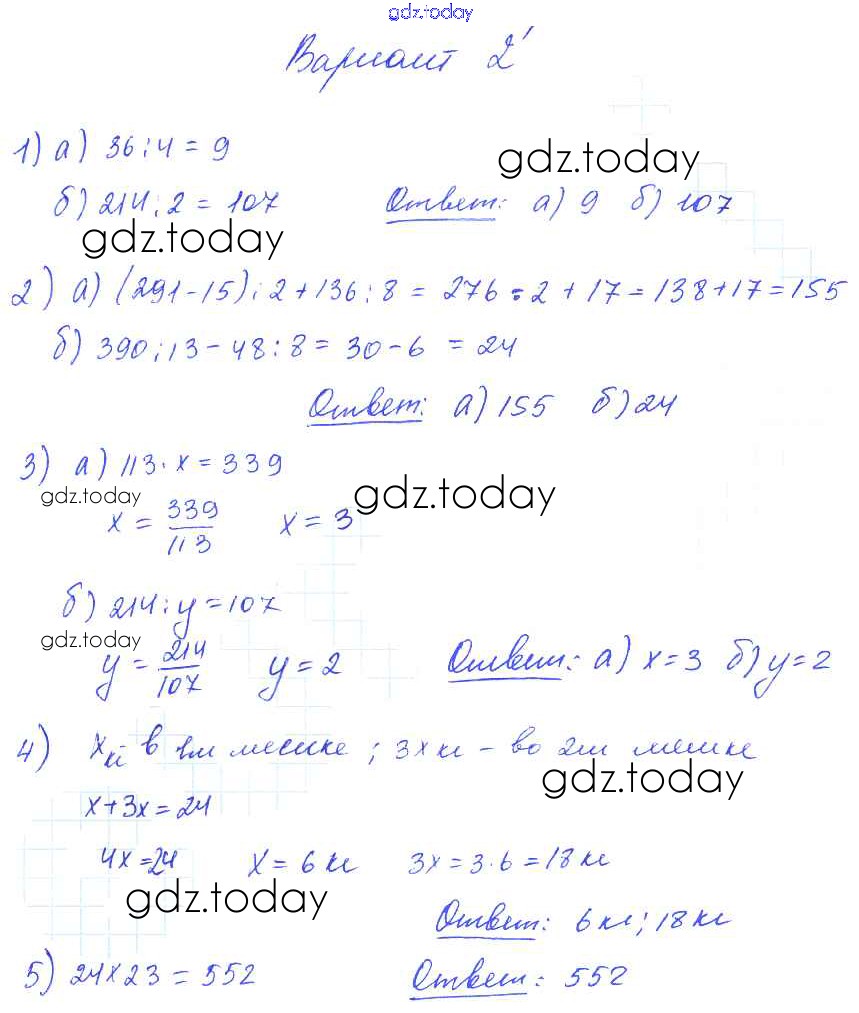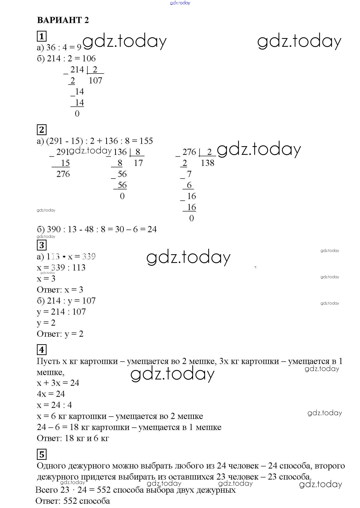 Ответы к СР №12. Деление Решение к самостоятельным работам вариант №2 Дидактическим материалам по Математике для 5 класса Попов Экзамен УМК 2017