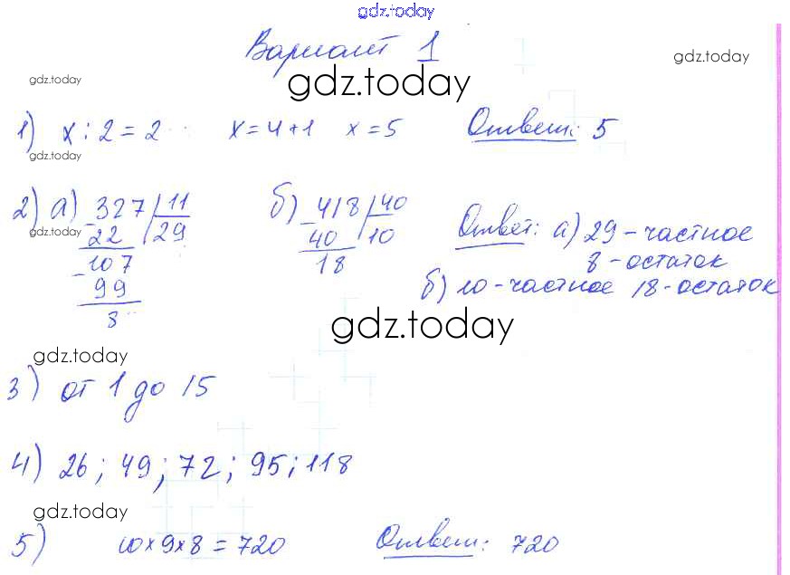 Ответы к СР №13. Деление с остатком Решение к самостоятельным работам вариант №1 Дидактическим материалам по Математике для 5 класса Попов Экзамен УМК 2017