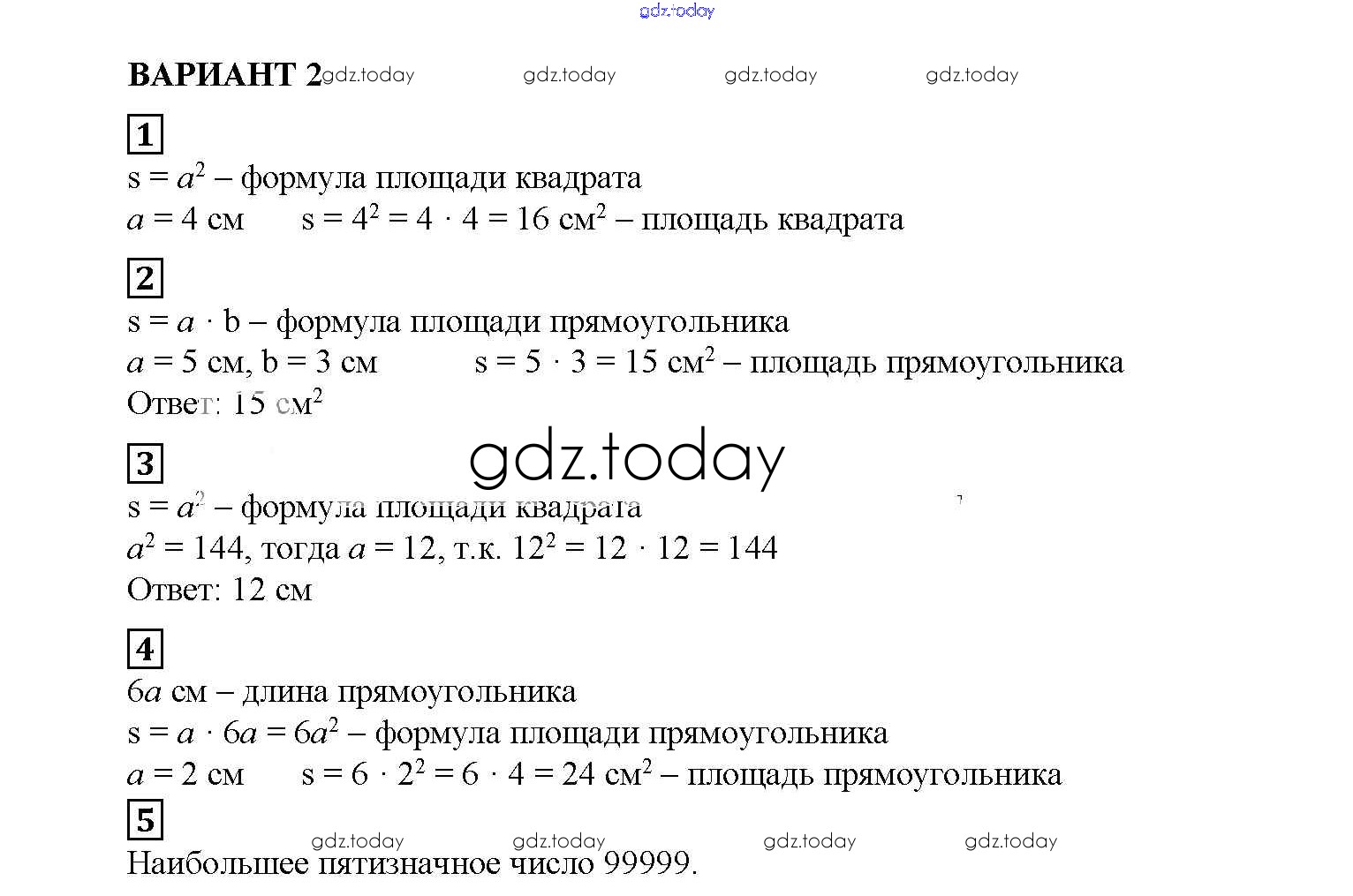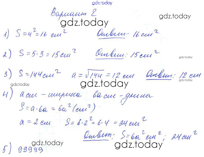 Ответы к СР №18. Площадь. Формула площади прямоугольника Решение к самостоятельным работам вариант №2 Дидактическим материалам по Математике для 5 класса Попов Экзамен УМК 2017