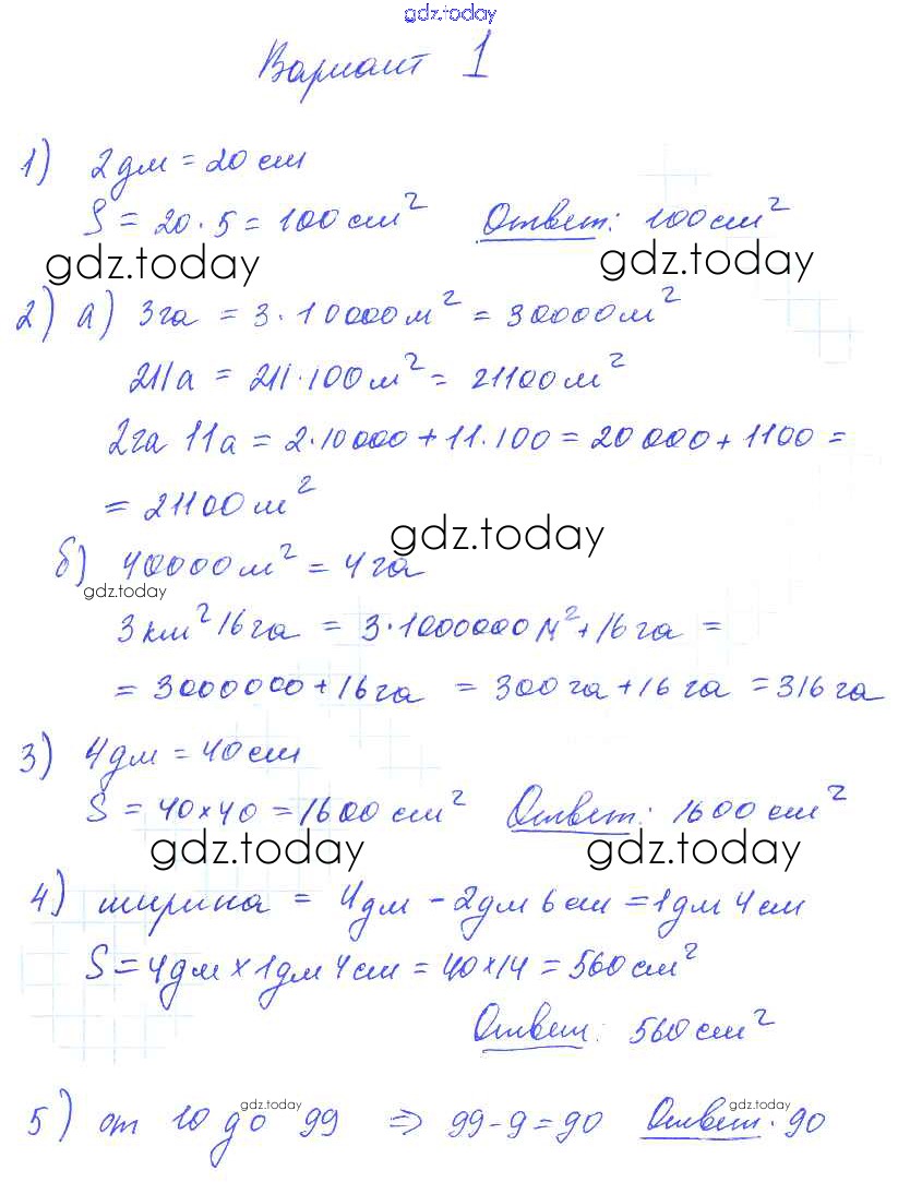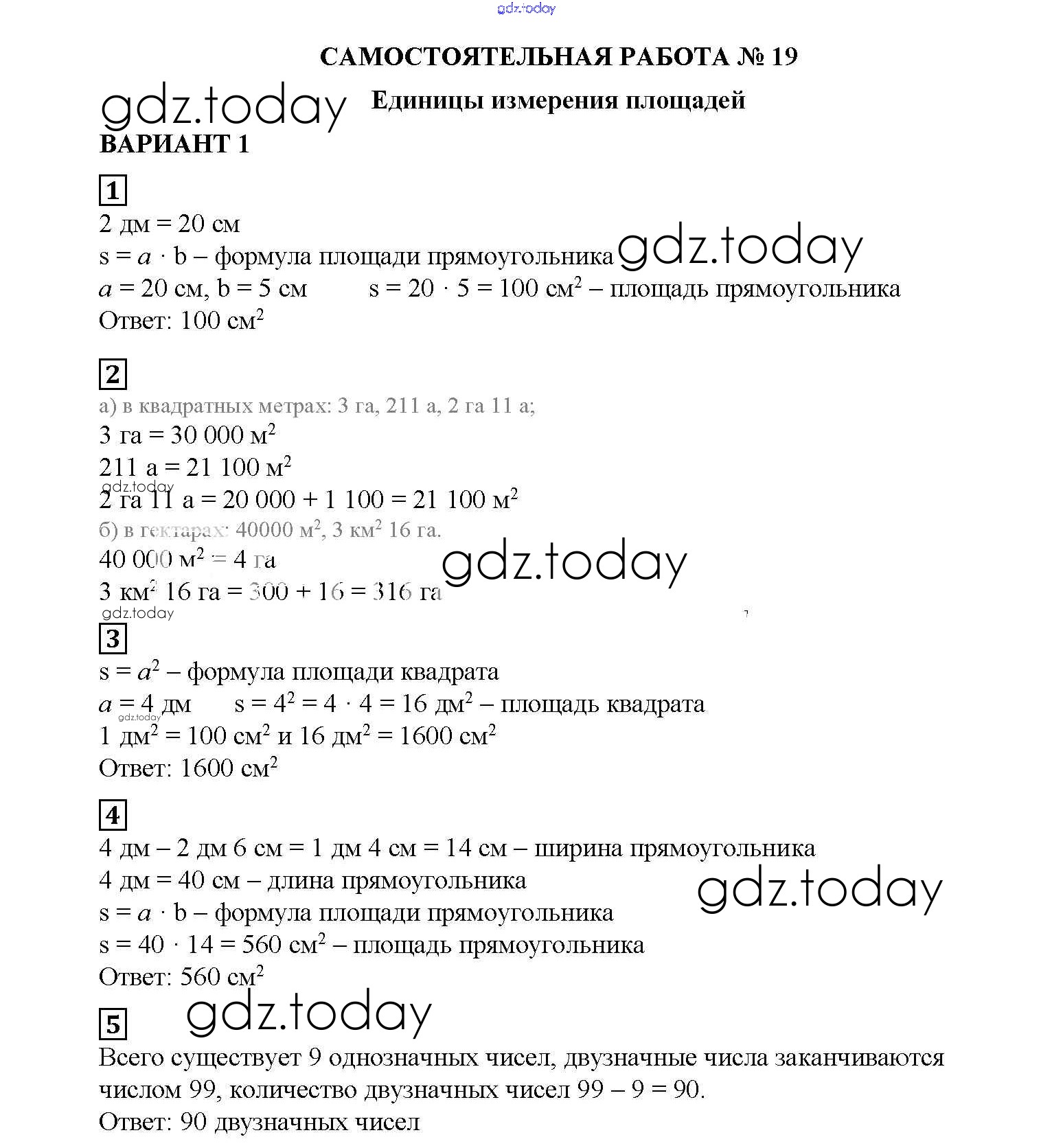 Ответы к СР №19. Единицы измерения площадей Решение к самостоятельным работам вариант №1 Дидактическим материалам по Математике для 5 класса Попов Экзамен УМК 2017