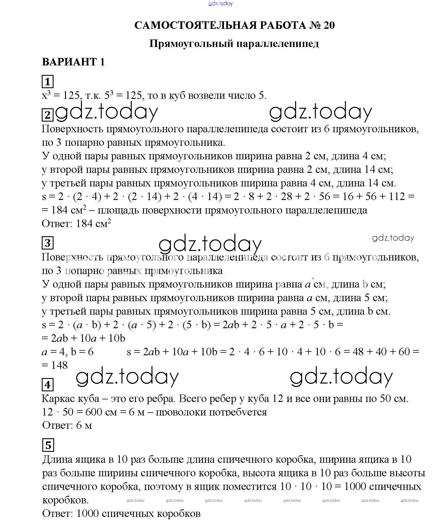 Ответы к СР №20. Прямоугольный параллелепипед Решение к самостоятельным работам вариант №1 Дидактическим материалам по Математике для 5 класса Попов Экзамен УМК 2017