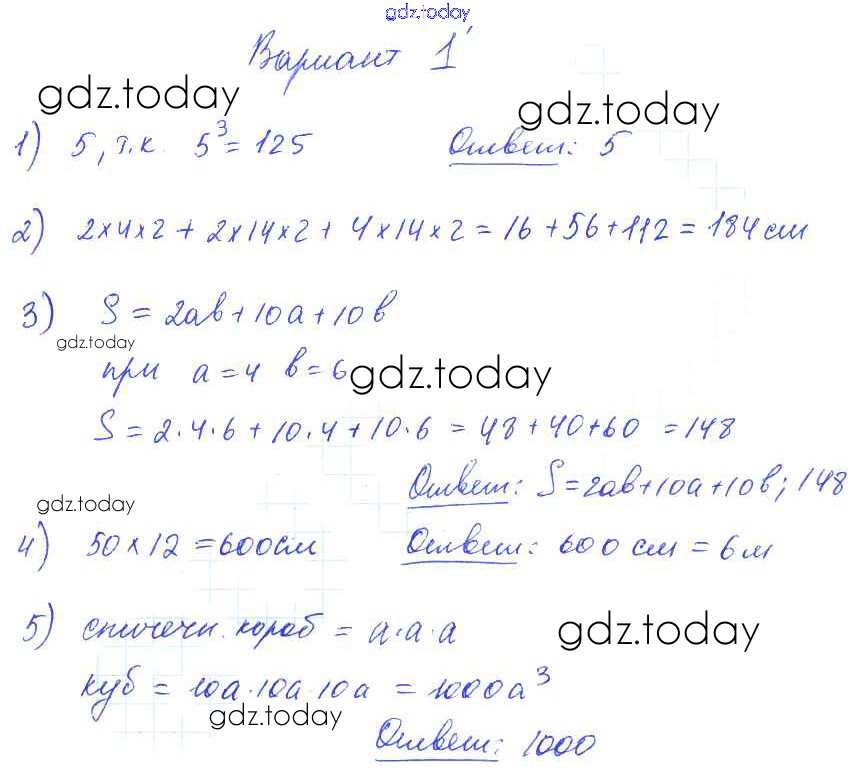 На страницах сайта gdz.today вы найдете учебный и вспомогательный материал, направленный на улучшения знаний школьной программы. ГДЗ - онлайн мир знаний СР №20. Прямоугольный параллелепипед Решение к самостоятельным работам вариант №1 Дидактическим материалам по Математике для 5 класса Попов Экзамен УМК 2017