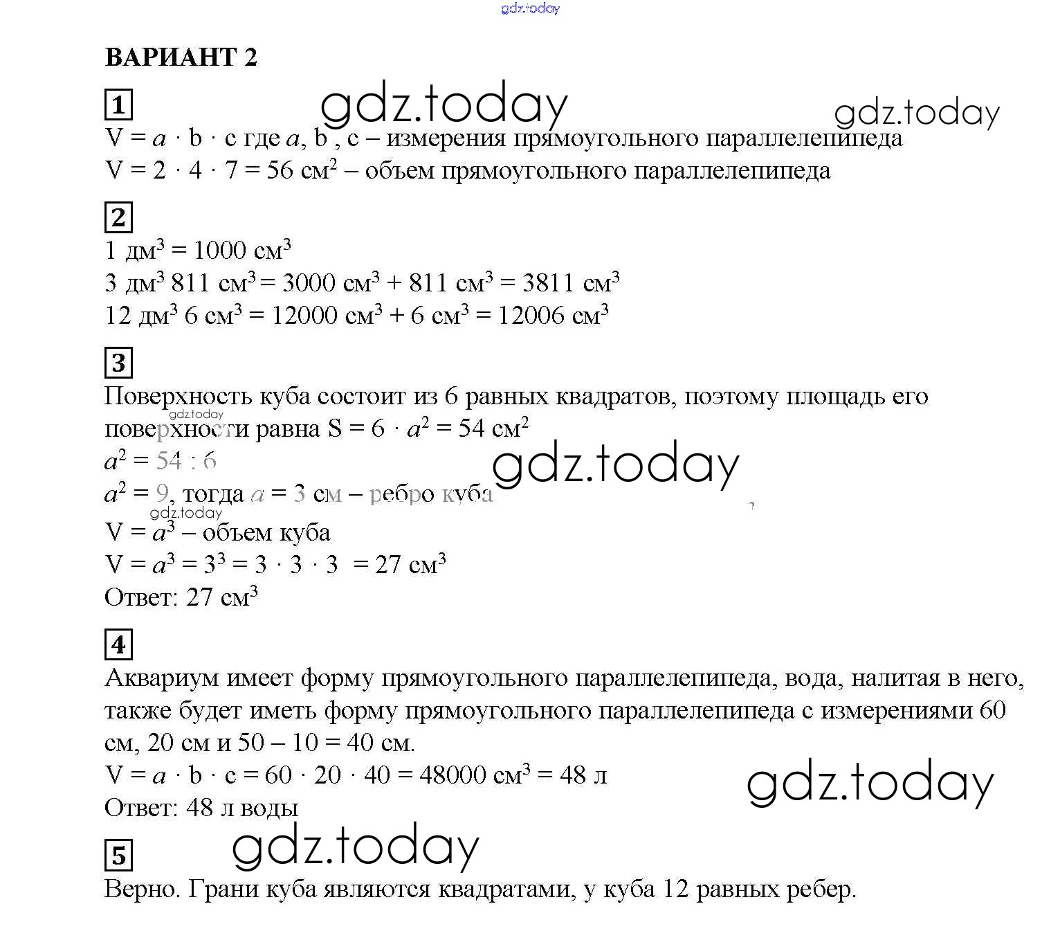 Ответы к СР №21. Объемы. Объем прямоугольного параллелепипеда Решение к самостоятельным работам вариант №2 Дидактическим материалам по Математике для 5 класса Попов Экзамен УМК 2017