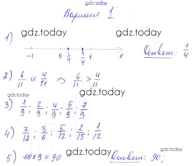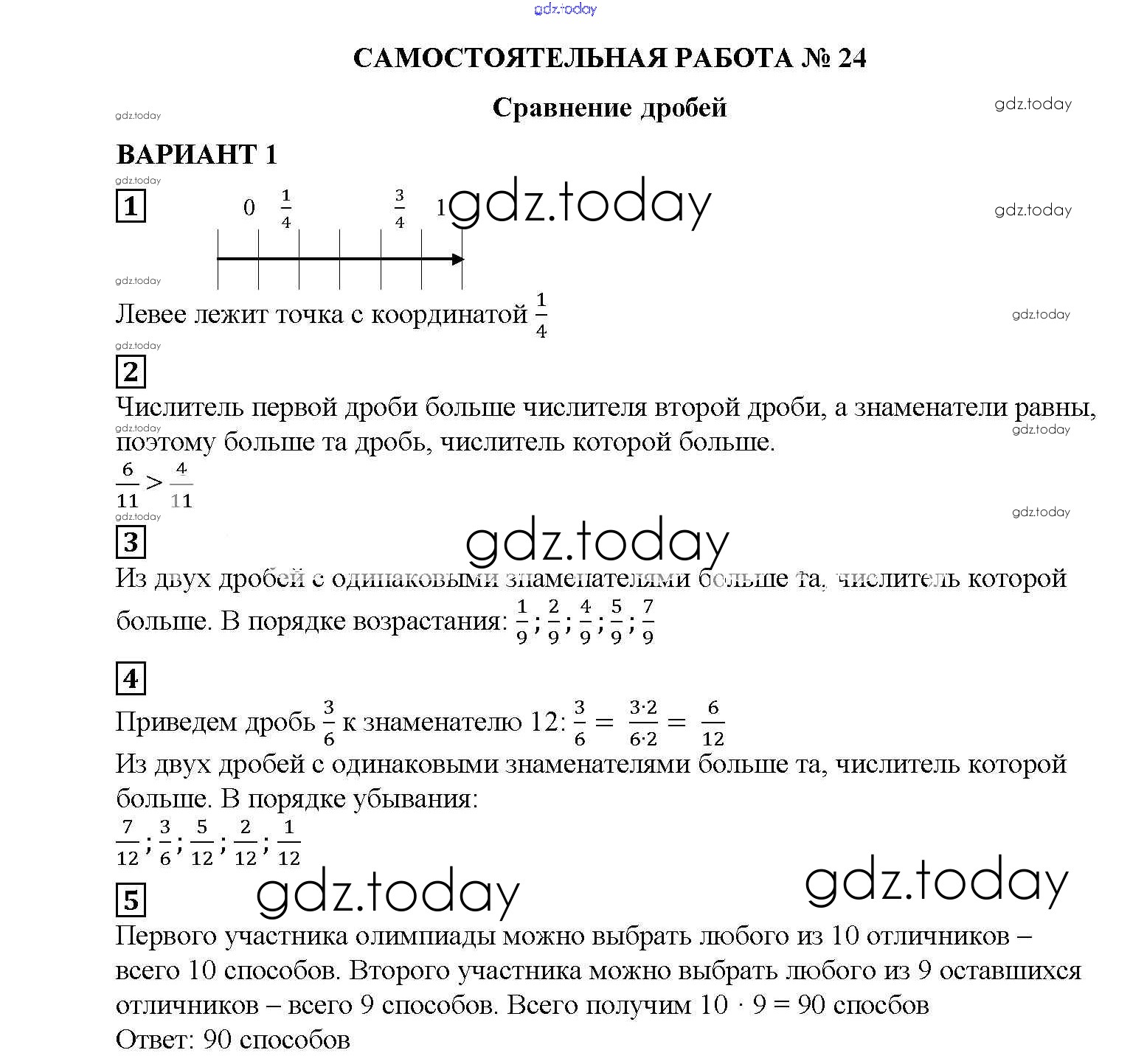 Ответы к СР №24. Сравнение дробей Решение к самостоятельным работам вариант №1 Дидактическим материалам по Математике для 5 класса Попов Экзамен УМК 2017