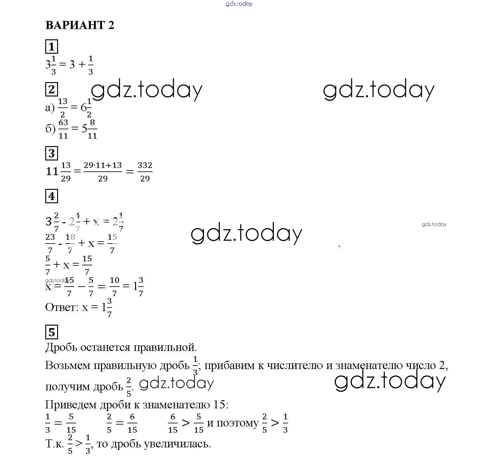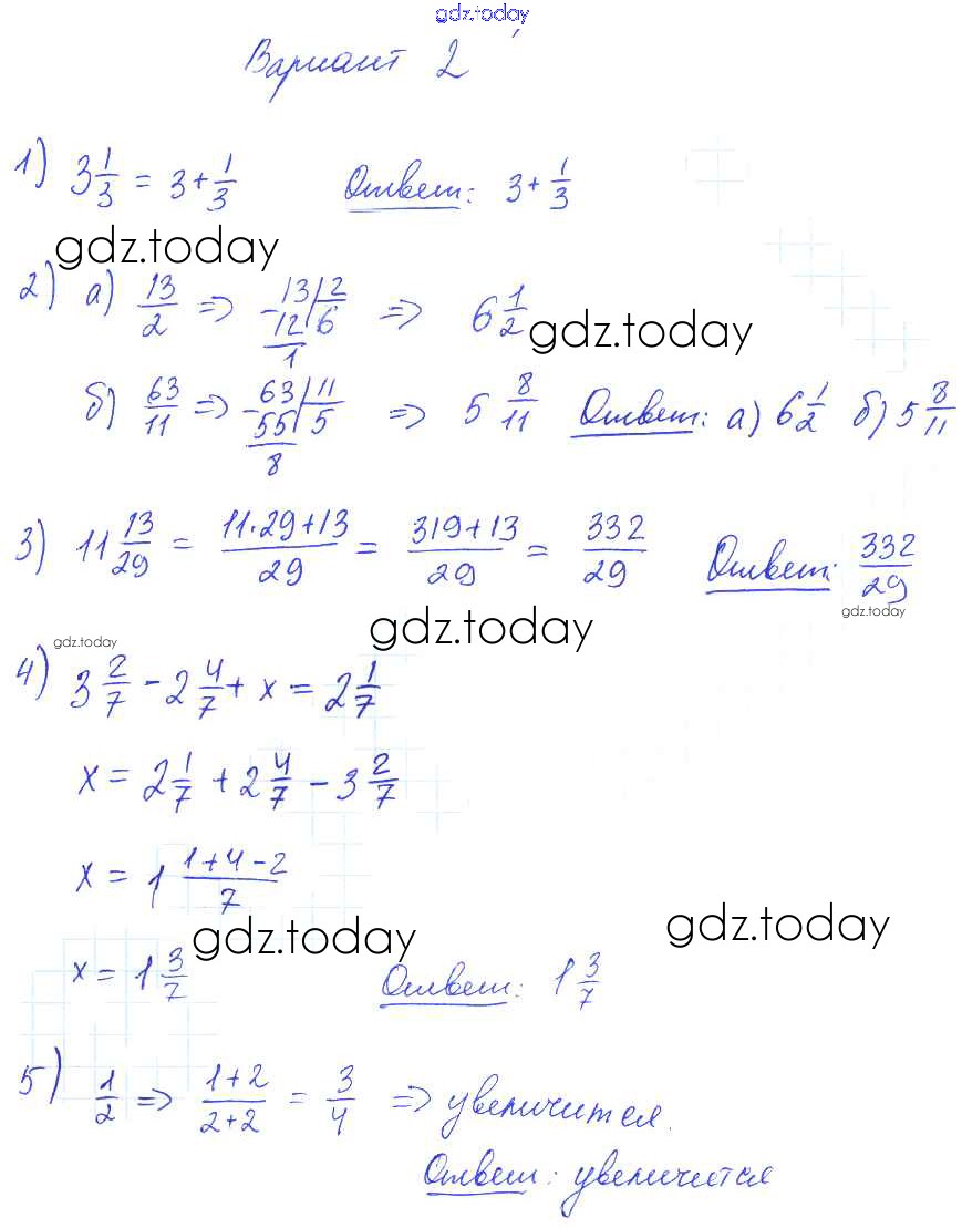Ответы к СР №28. Смешанные числа Решение к самостоятельным работам вариант №2 Дидактическим материалам по Математике для 5 класса Попов Экзамен УМК 2017