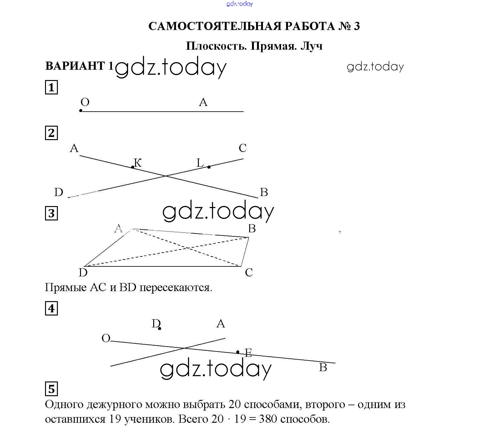 Ответы к СР №3. Плоскость. Прямая. Луч Решение к самостоятельным работам вариант №1 Дидактическим материалам по Математике для 5 класса Попов Экзамен УМК 2017