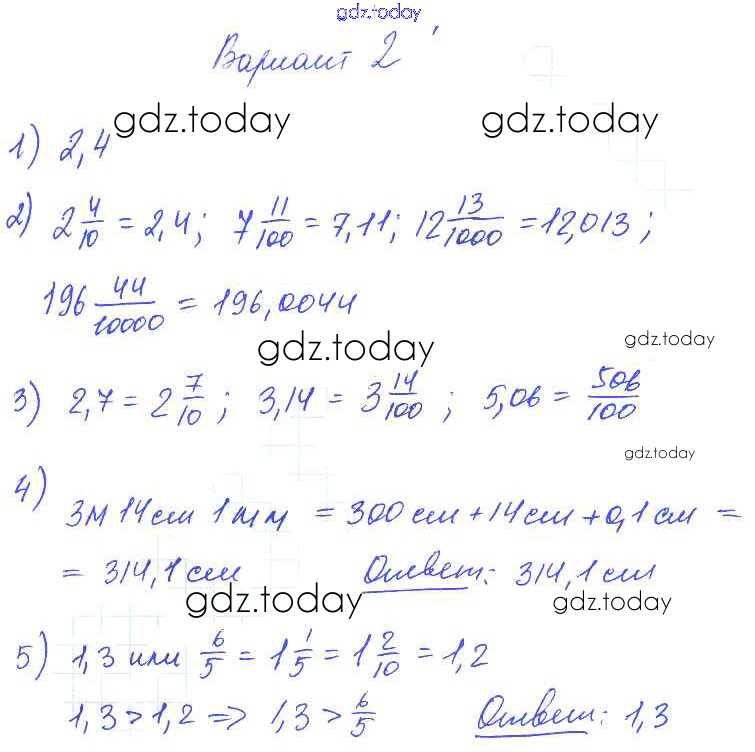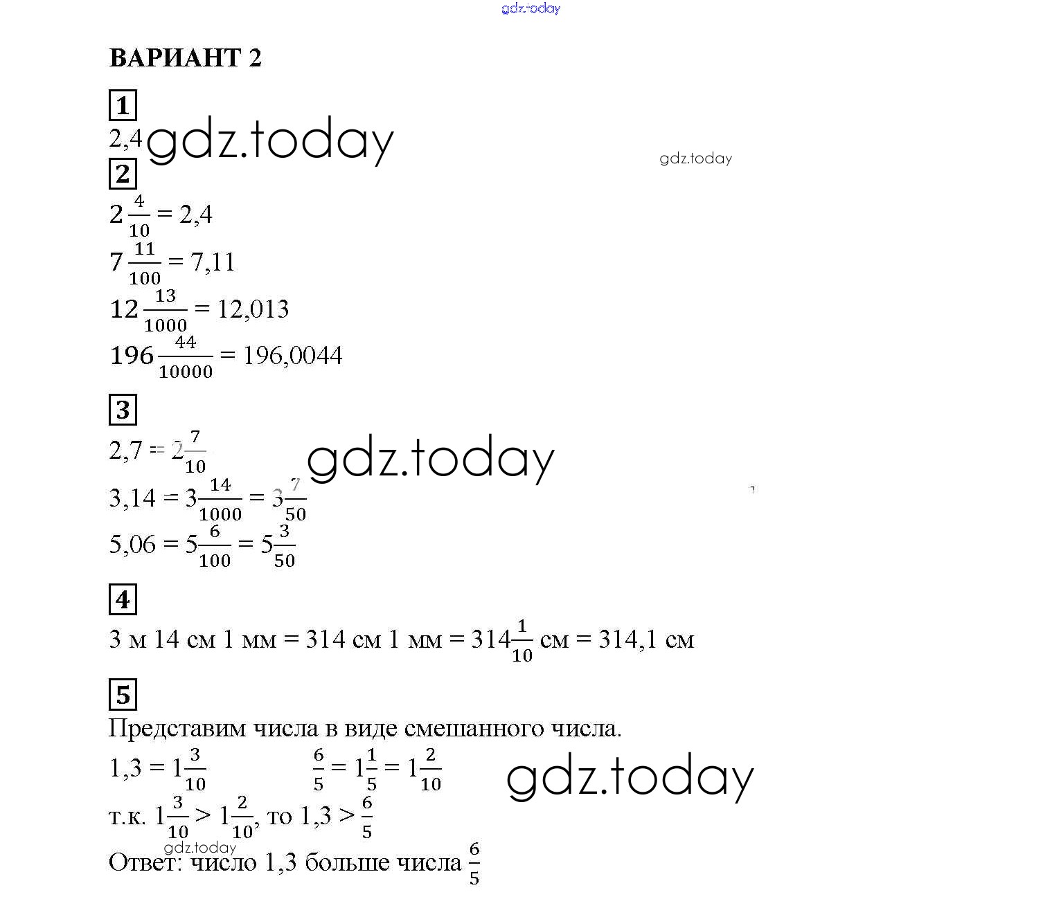 Ответы к СР №30. Десятичная запись дробных чисел Решение к самостоятельным работам вариант №2 Дидактическим материалам по Математике для 5 класса Попов Экзамен УМК 2017