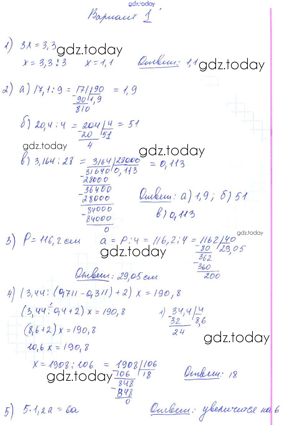 Ответы к СР №35. Деление десятичных дробей на натуральные числа Решение к самостоятельным работам вариант №1 Дидактическим материалам по Математике для 5 класса Попов Экзамен УМК 2017
