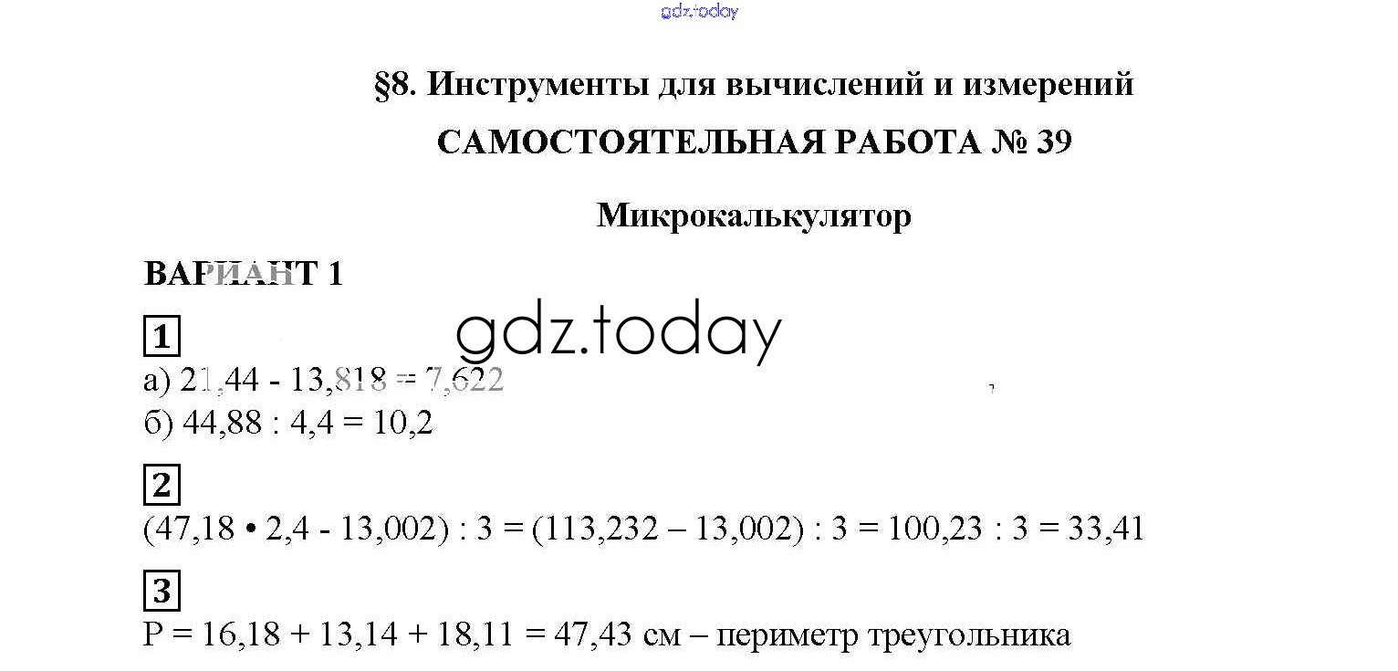 Ответы к СР №39. Микрокалькулятор Решение к самостоятельным работам вариант №1 Дидактическим материалам по Математике для 5 класса Попов Экзамен УМК 2017