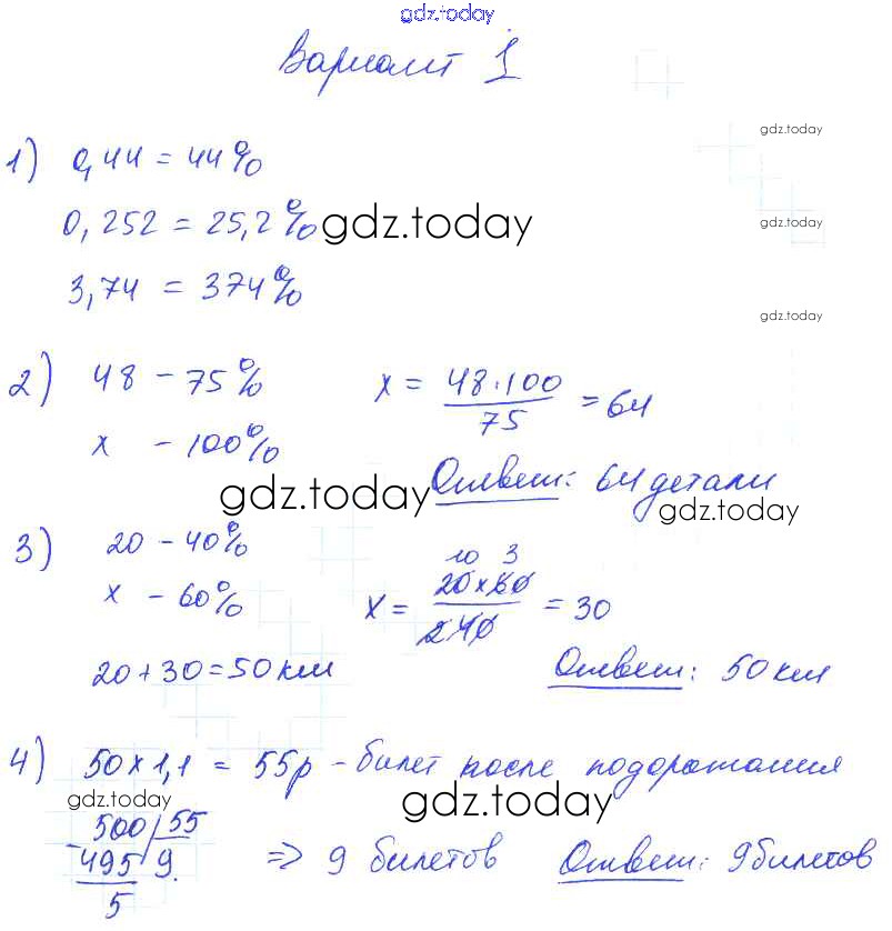 Ответы к СР №40. Проценты Решение к самостоятельным работам вариант №1 Дидактическим материалам по Математике для 5 класса Попов Экзамен УМК 2017