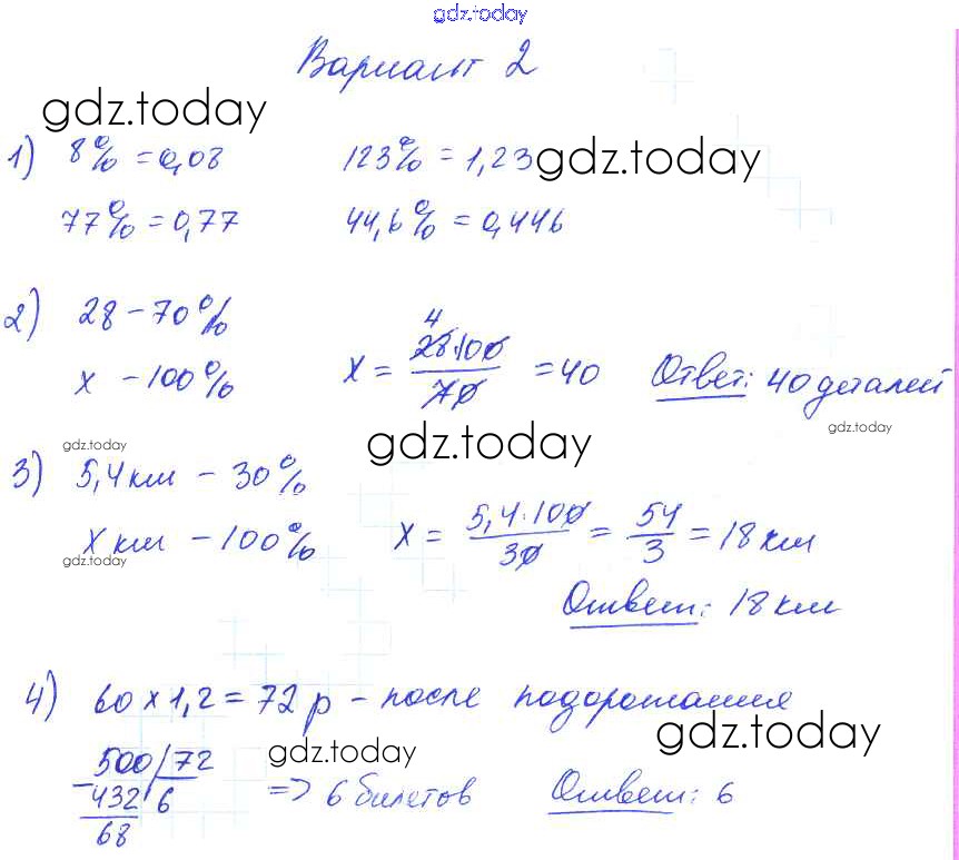 Ответы к СР №40. Проценты Решение к самостоятельным работам вариант №2 Дидактическим материалам по Математике для 5 класса Попов Экзамен УМК 2017