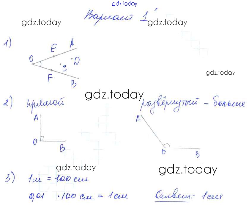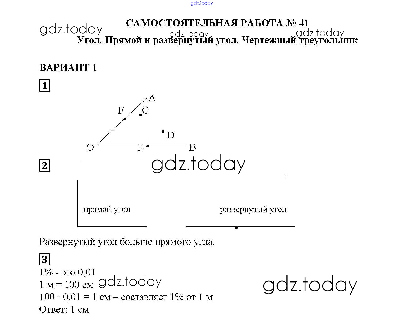 Ответы к СР №41. Угол. Прямой и развернутый угол. Чертежный треугольник Решение к самостоятельным работам вариант №1 Дидактическим материалам по Математике для 5 класса Попов Экзамен УМК 2017