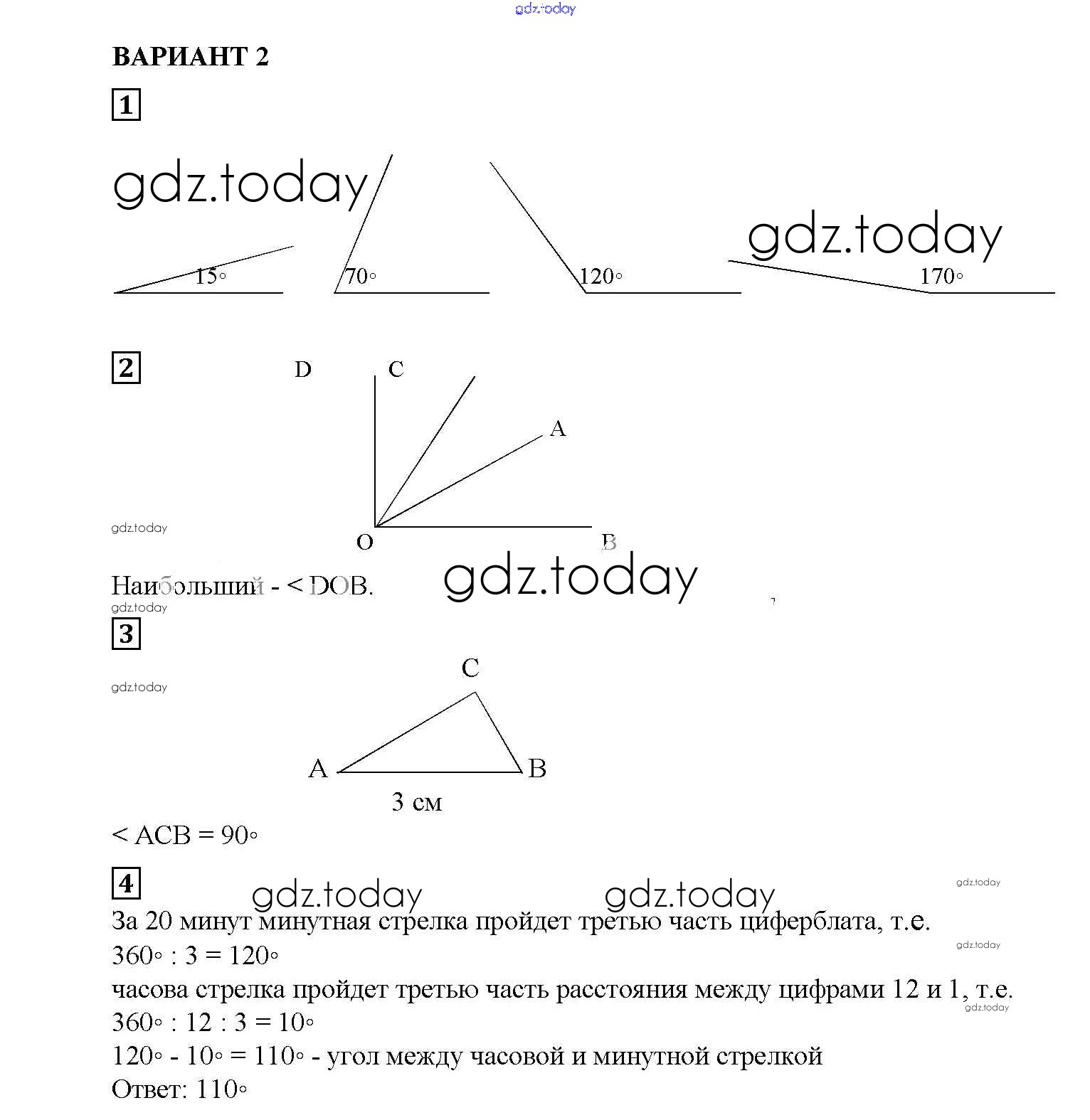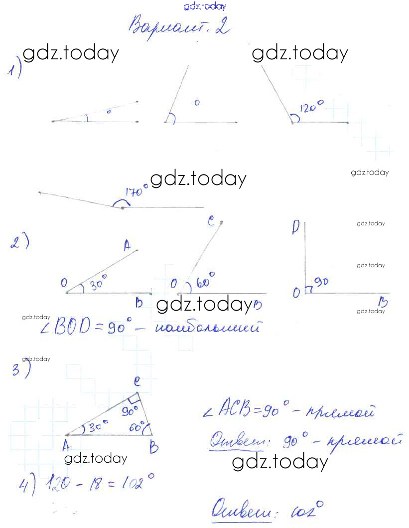 Ответы к СР №42. Измерение углов. Транспортир Решение к самостоятельным работам вариант №2 Дидактическим материалам по Математике для 5 класса Попов Экзамен УМК 2017
