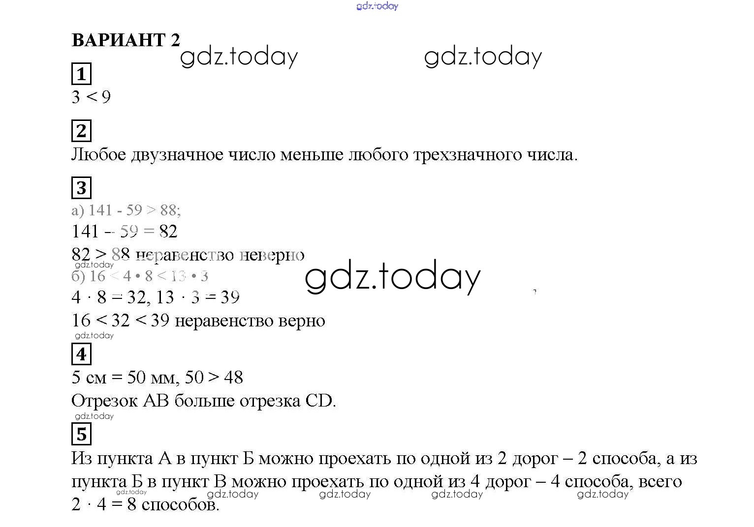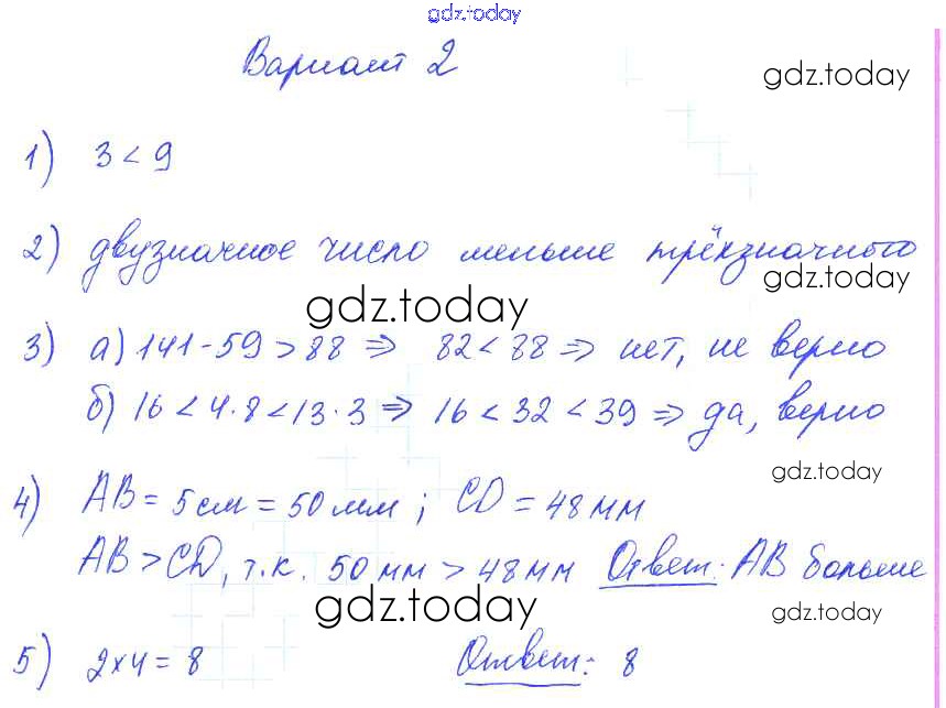 Ответы к СР №5. Меньше или больше Решение к самостоятельным работам вариант №2 Дидактическим материалам по Математике для 5 класса Попов Экзамен УМК 2017