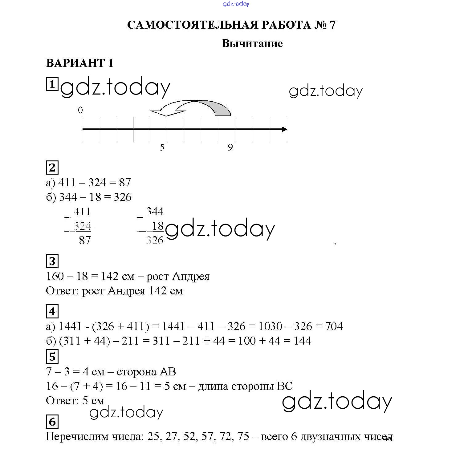 Ответы к СР №7. Вычитание Решение к самостоятельным работам вариант №1 Дидактическим материалам по Математике для 5 класса Попов Экзамен УМК 2017