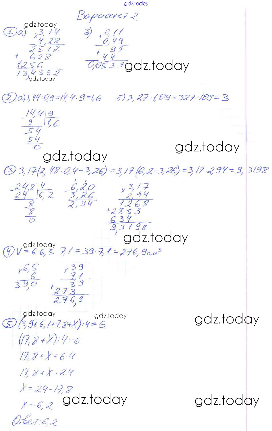 Ответы к КР-11. Варианты Решение к контрольным работам 2 Самостоятельным и контрольным работам по Математике для 5 класса Попов Экзамен УМК 2016