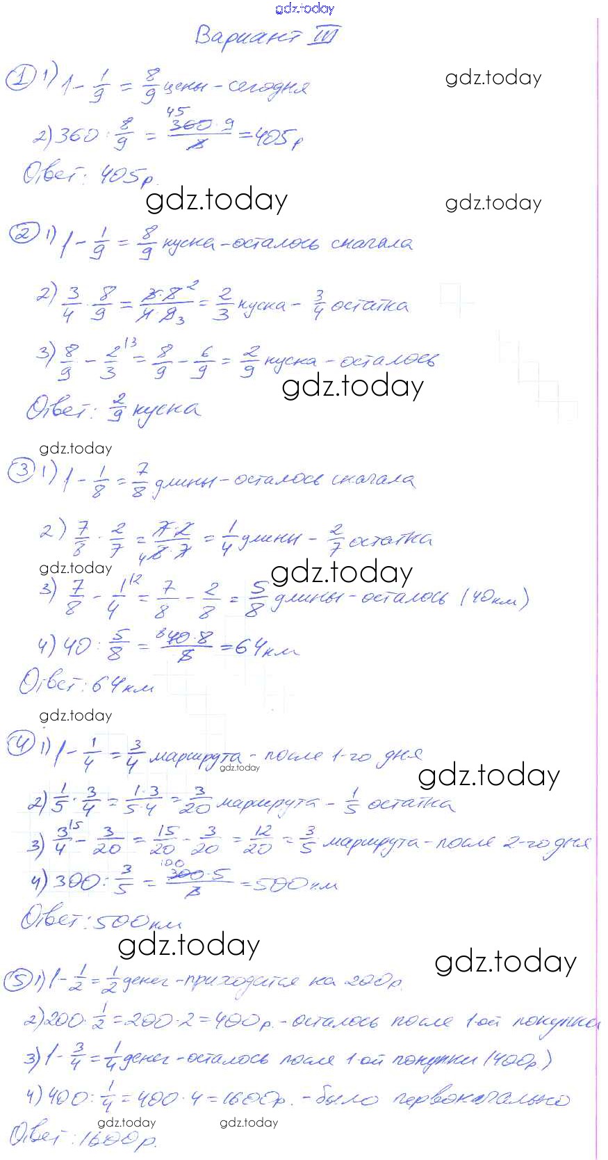 Ответы к СР-18. Варианты Решение к cамостоятельным работам 3 Дидактическим материалам по Математике для 5 класса Потапов, Шевкин Просвещение МГУ - школе 2017