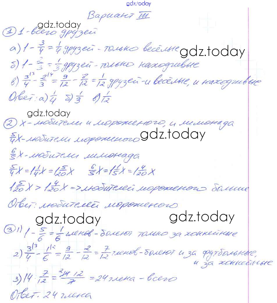 Ответы к СР-19. Варианты Решение к cамостоятельным работам 3 Дидактическим материалам по Математике для 5 класса Потапов, Шевкин Просвещение МГУ - школе 2017