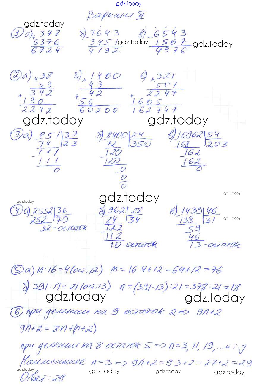 Ответы к СР-5. Варианты Решение к cамостоятельным работам 2 Дидактическим материалам по Математике для 5 класса Потапов, Шевкин Просвещение МГУ - школе 2017