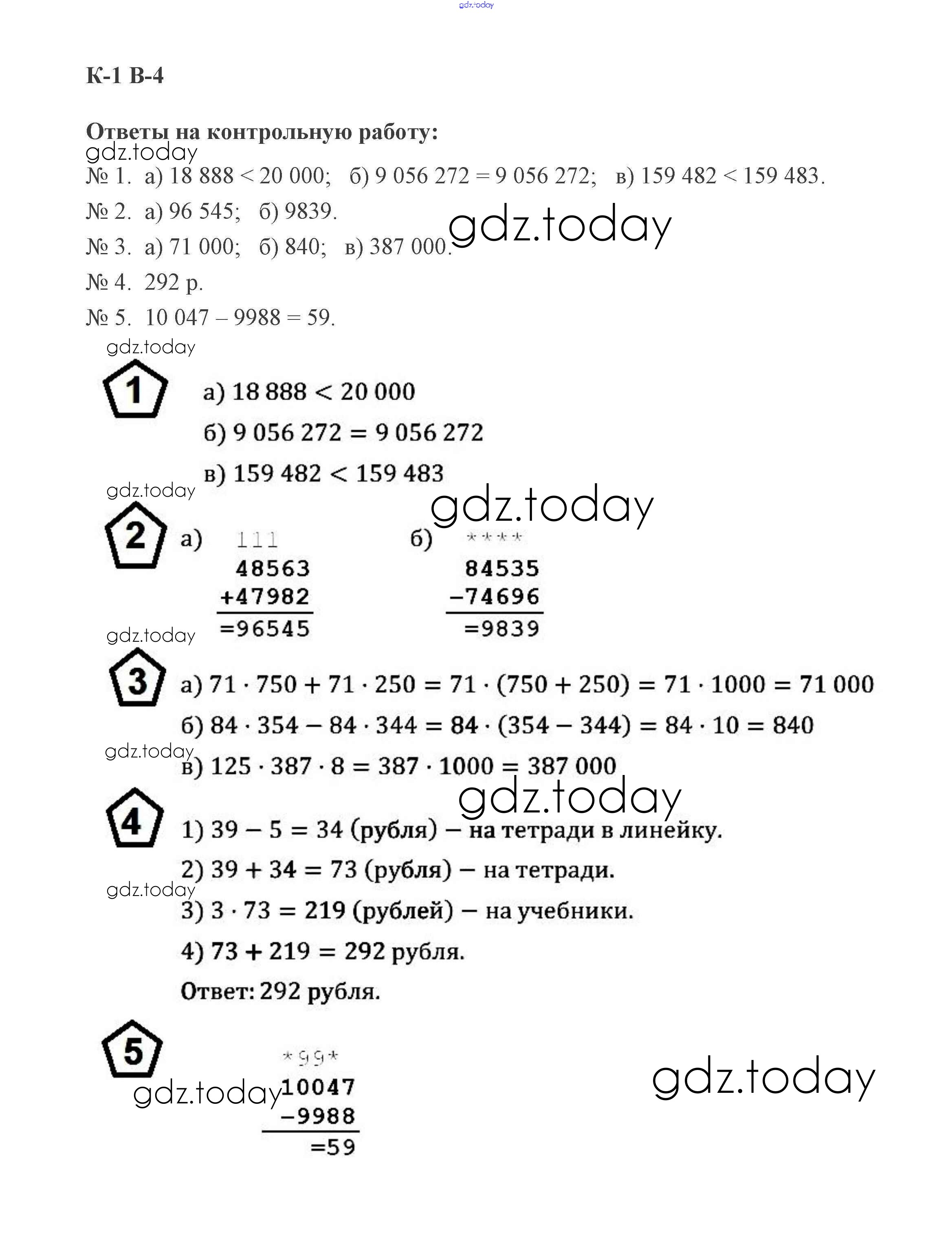 Ответы к КР-1. Варианты Решение к контрольным работам 4 Дидактическим материалам по Математике для 5 класса Потапов, Шевкин Просвещение МГУ - школе 2017