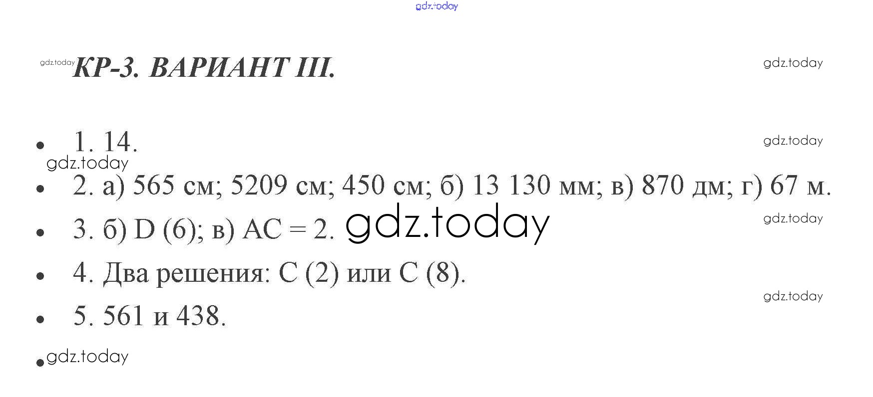 Ответы к КР-3. Варианты Решение к контрольным работам 3 Дидактическим материалам по Математике для 5 класса Потапов, Шевкин Просвещение МГУ - школе 2017
