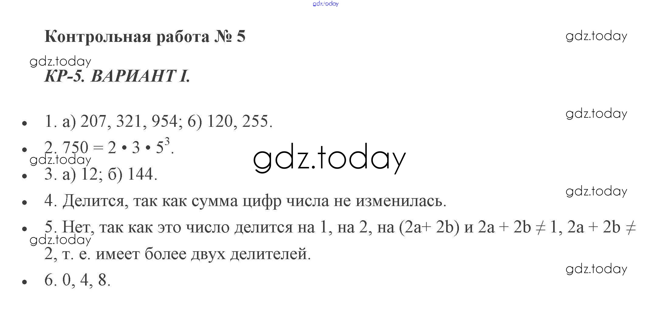 Ответы к КР-5. Варианты Решение к контрольным работам 1 Дидактическим материалам по Математике для 5 класса Потапов, Шевкин Просвещение МГУ - школе 2017