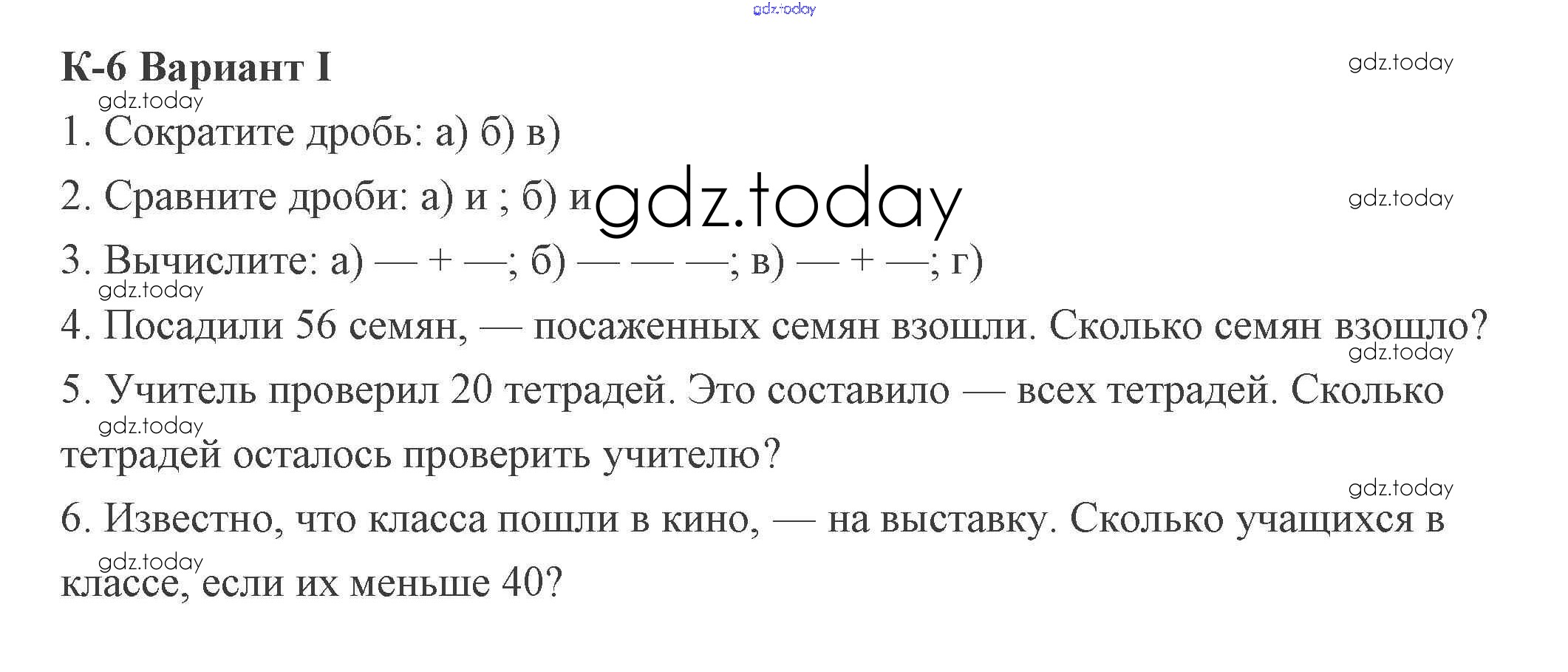 На страницах сайта gdz.today вы найдете учебный и вспомогательный материал, направленный на улучшения знаний школьной программы. ГДЗ - онлайн мир знаний КР-6. Варианты Решение к контрольным работам 1 Дидактическим материалам по Математике для 5 класса Потапов, Шевкин Просвещение МГУ - школе 2017