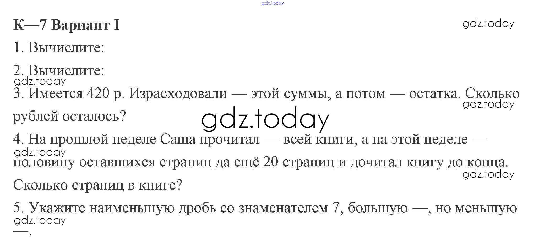 На страницах сайта gdz.today вы найдете учебный и вспомогательный материал, направленный на улучшения знаний школьной программы. ГДЗ - онлайн мир знаний КР-7. Варианты Решение к контрольным работам 1 Дидактическим материалам по Математике для 5 класса Потапов, Шевкин Просвещение МГУ - школе 2017