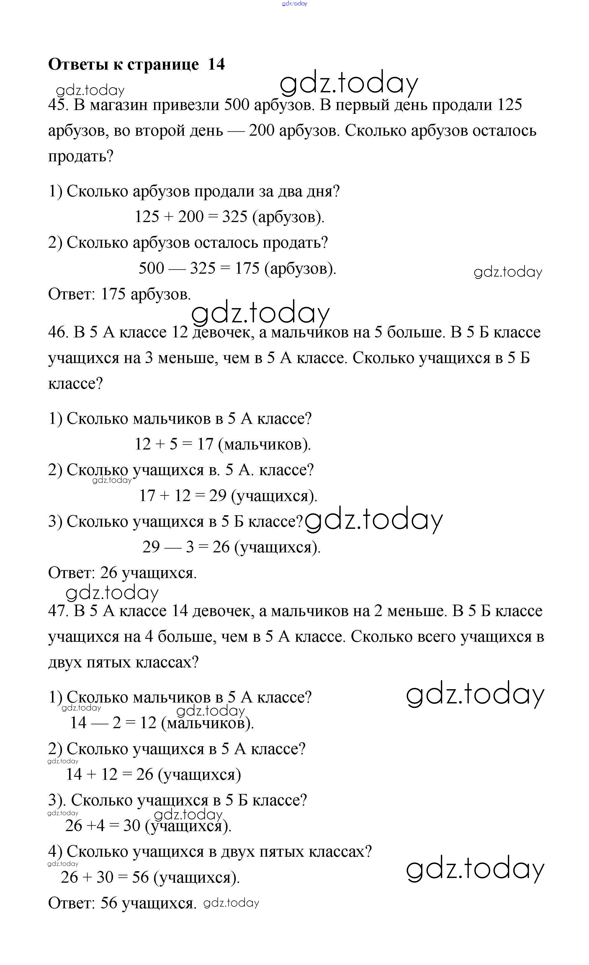 Ответы к Решение к части 1. Страницы 14 Рабочей тетради по Математике для 5 класса Потапов, Шевкин Просвещение 2019